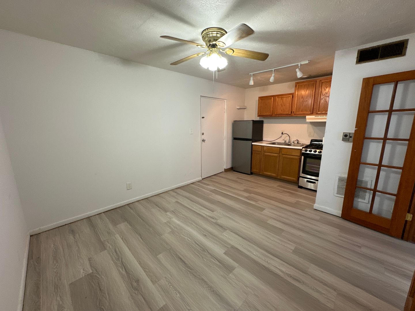 Located just four blocks north of Lane and west of High Street, this unit is ideal for one person. This 1st floor middle unit has a walk-in closet, ceiling fans, and French doors.