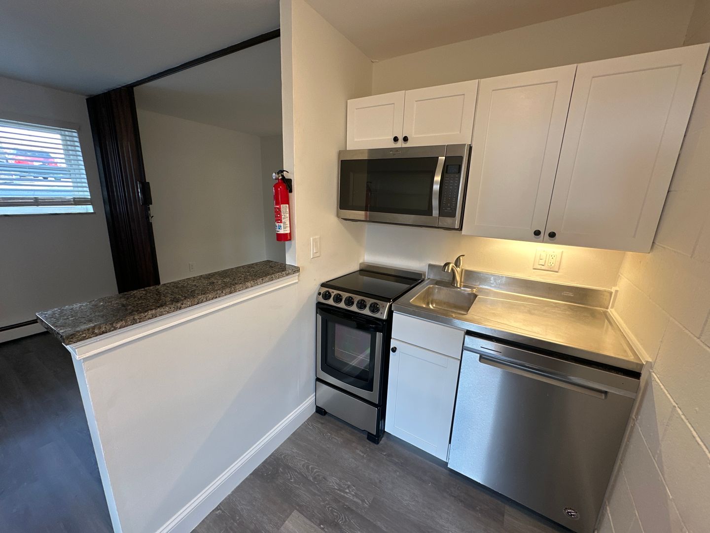 This unit includes ceilings fans, an efficiency-sized kitchen, dishwasher along with a full bathroom. Additionally, there is a credit card operated laundry on-site and off-street parking available for purchase. Worth checking out now! Call us today!