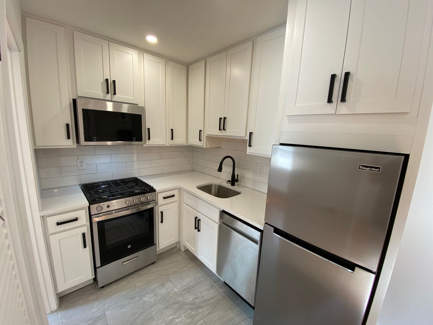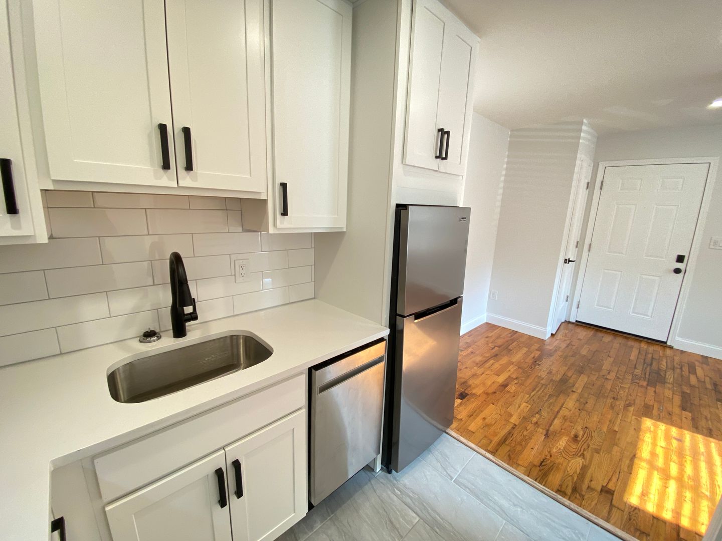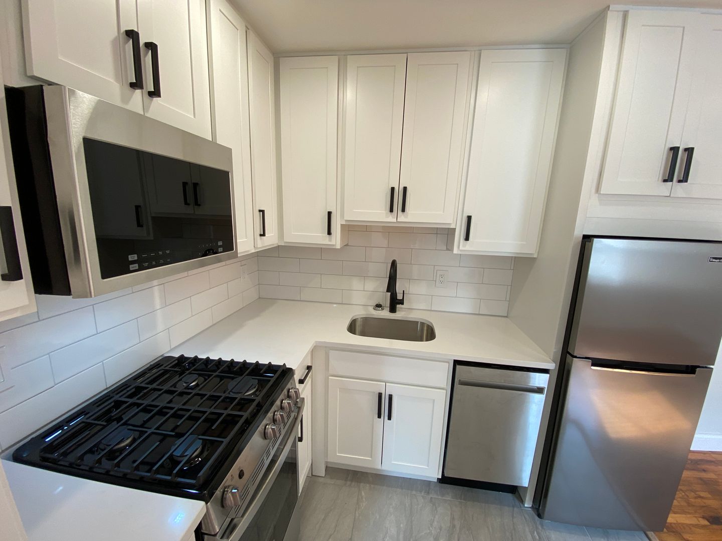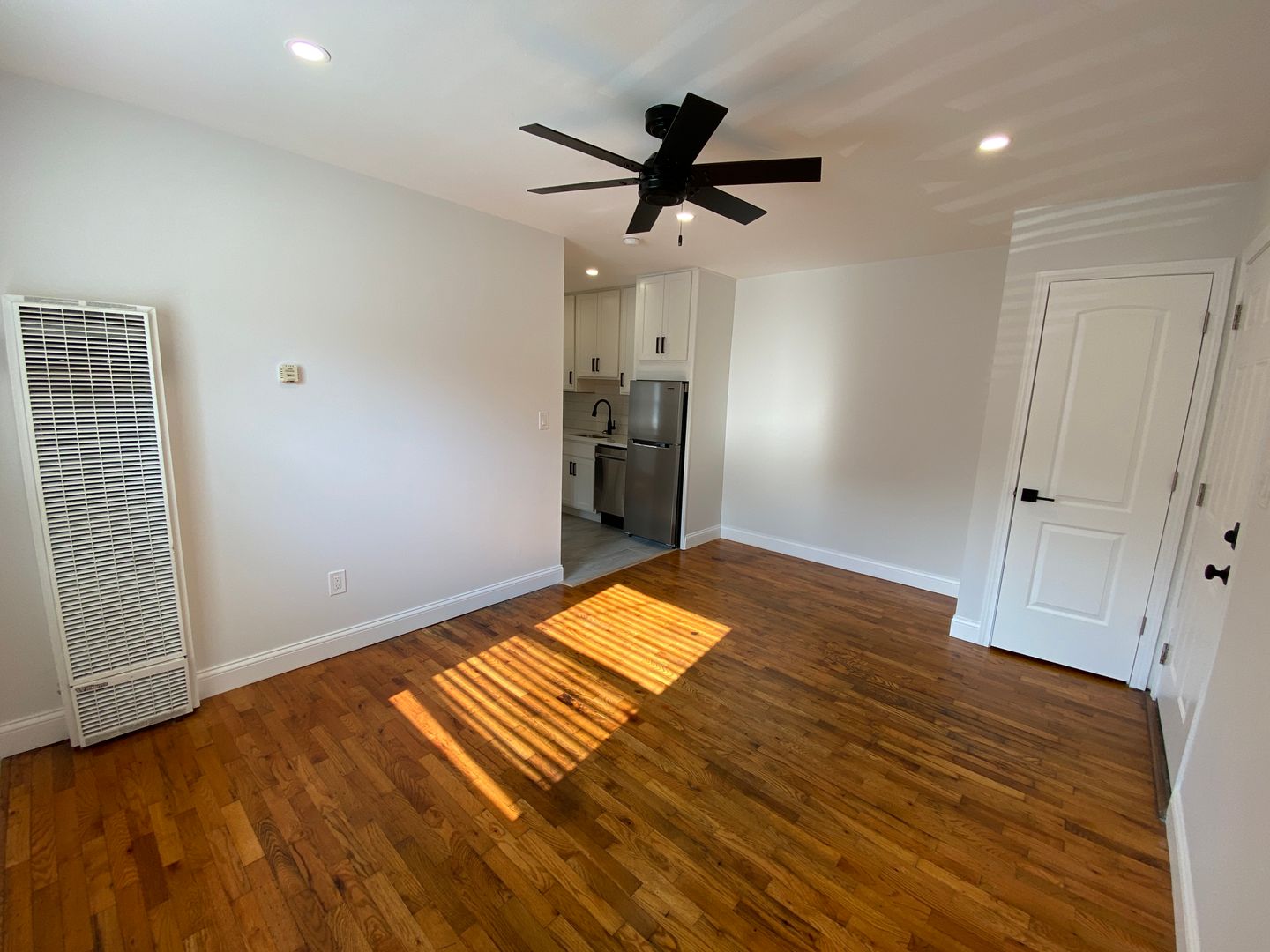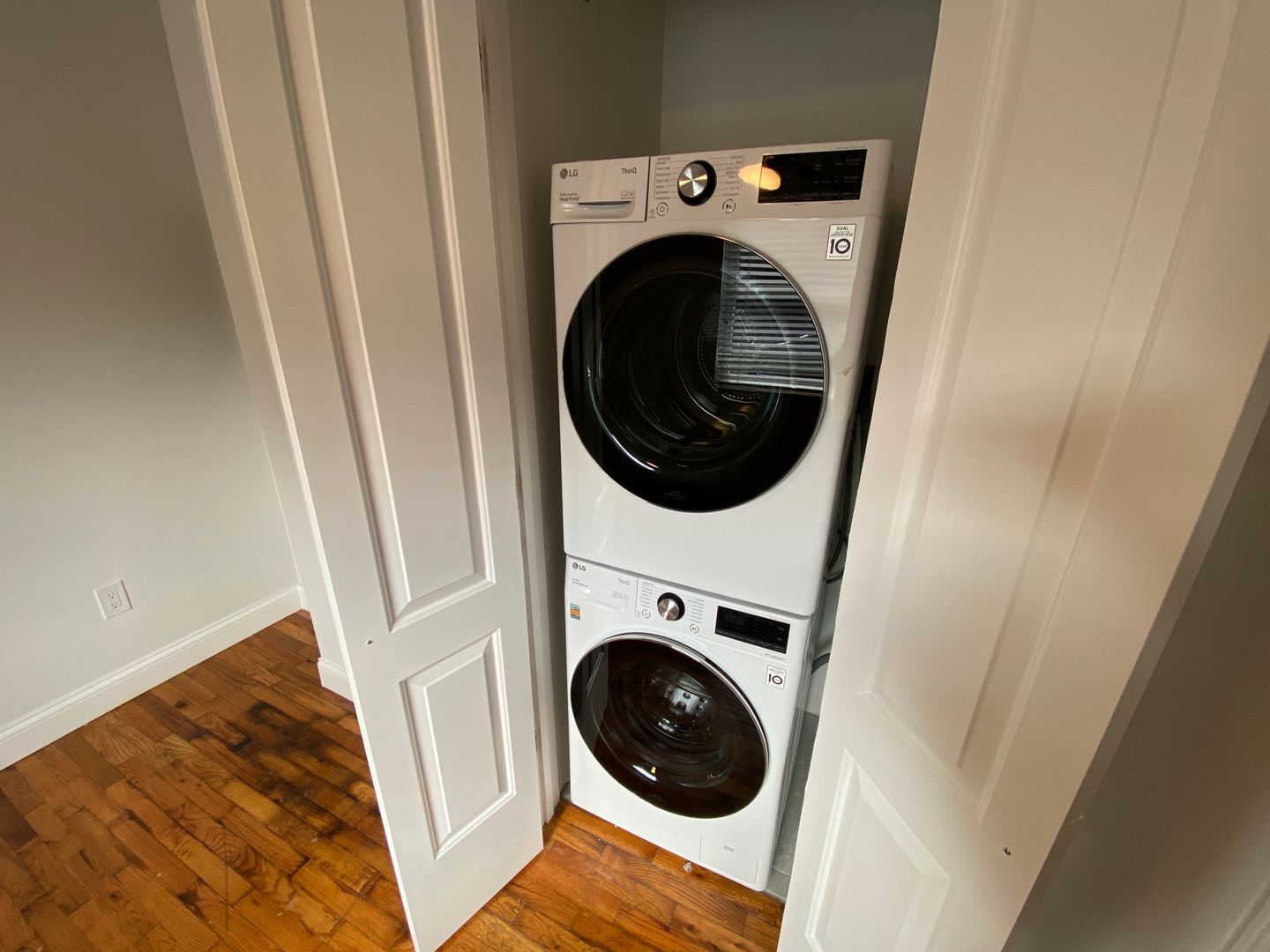This is a standard flat with a nice living room that opens up to the kitchen. Spacious closet in the bedroom and a bathroom with shower and tub. Some updates include a built-in microwave, stainless steel appliances, hardwood floors, stacked washer/dryer in unit and off-street parking is available for purchase.