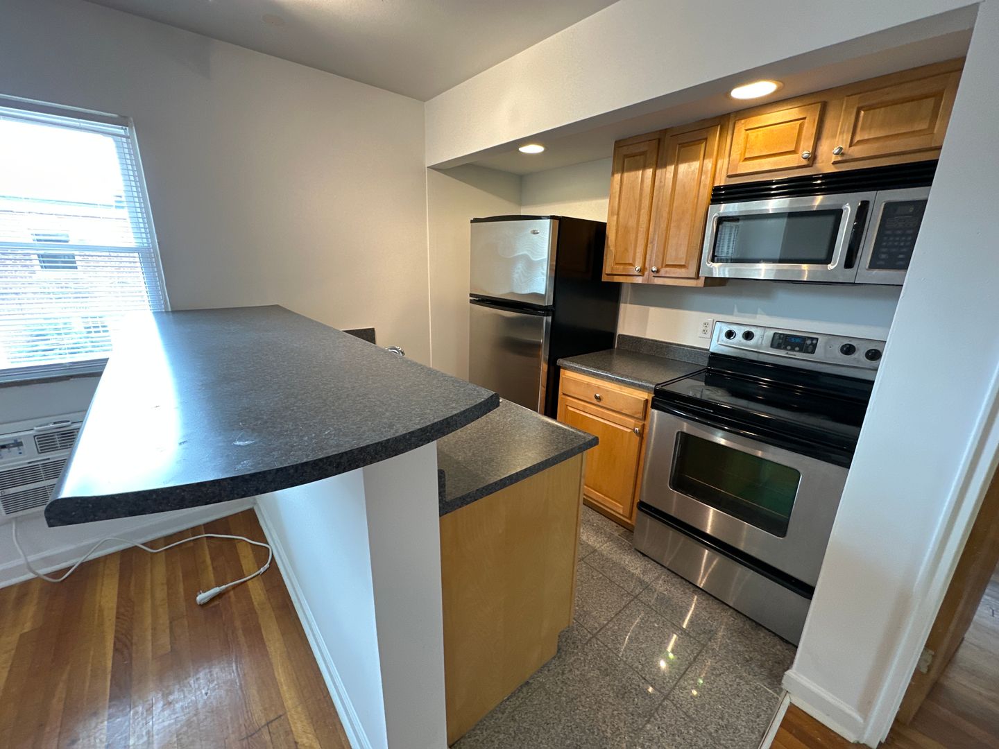 One of the most spacious apartments near campus! Unit includes refinished hardwood floors, stainless steel oven/stove, refrigerator, dishwasher and microwave!