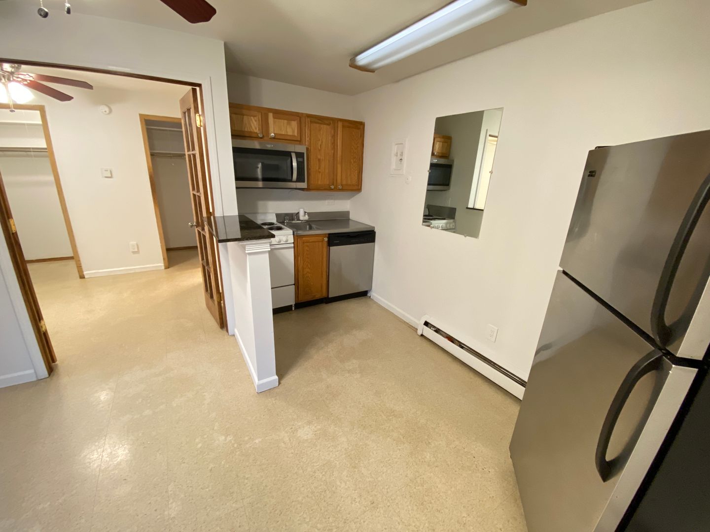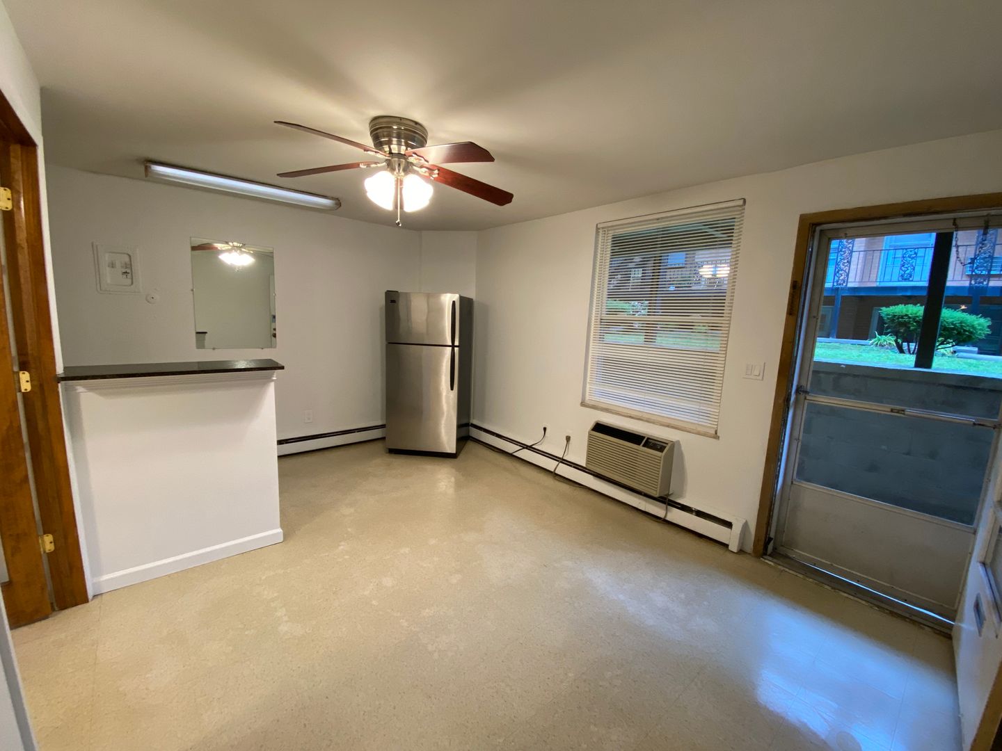 There is a washer/dryer on-site in the building, and optional limited off-street parking available for purchase. There is even a courtyard for the tenants’ use. For the low price, this flat is worth checking out. Call us today!