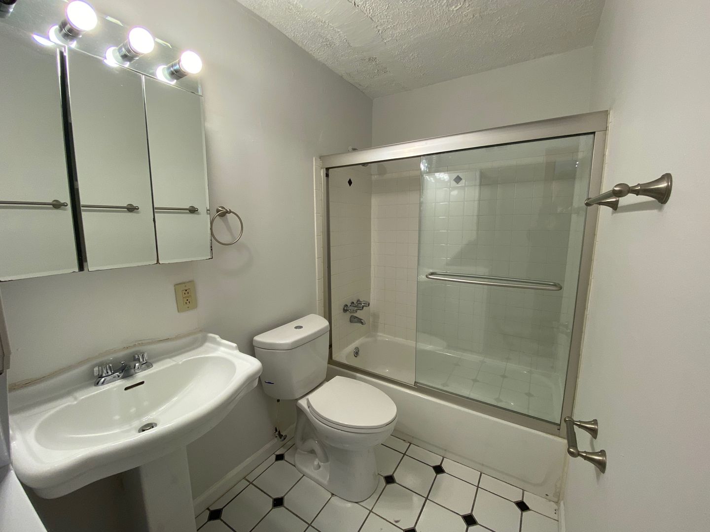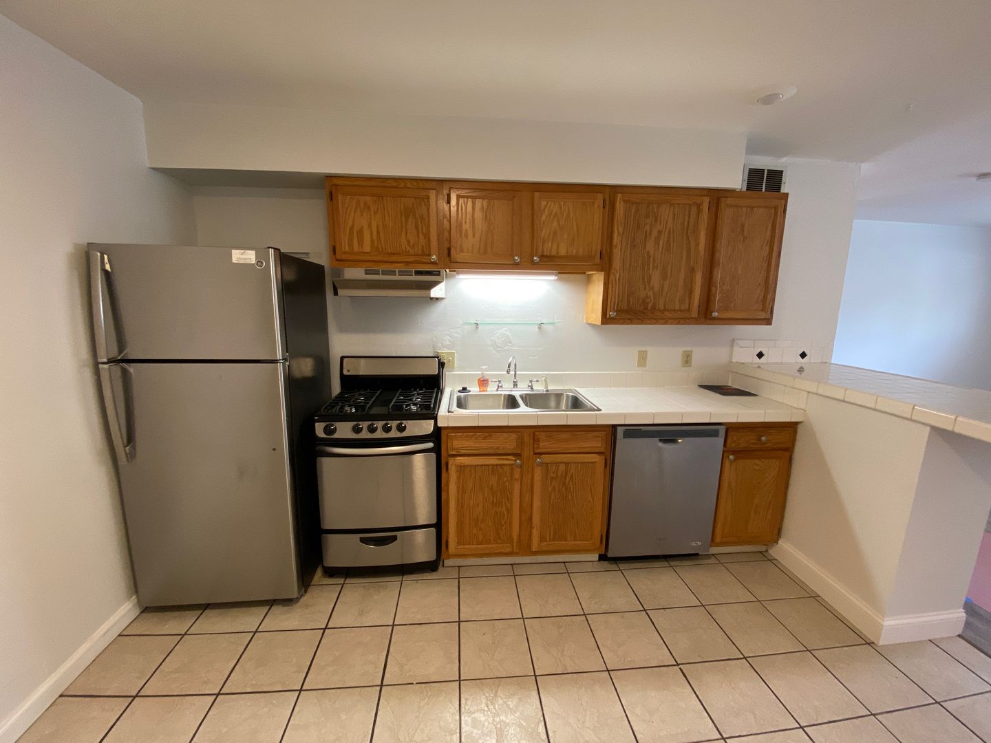 This apartment has a large, open floor plan with a dine-in kitchen.