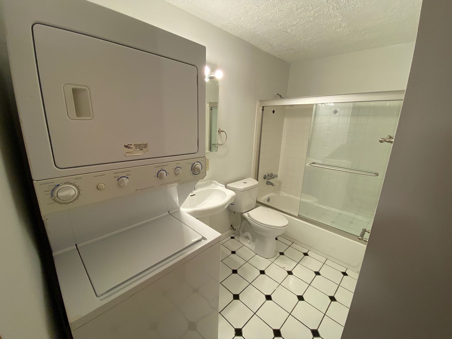 This unit includes central air, ceramic tile in bath and kitchen, ceiling fans as well as mini-blinds. Shared washer/dryers in the building for tenants use. Off street parking is available for purchase.