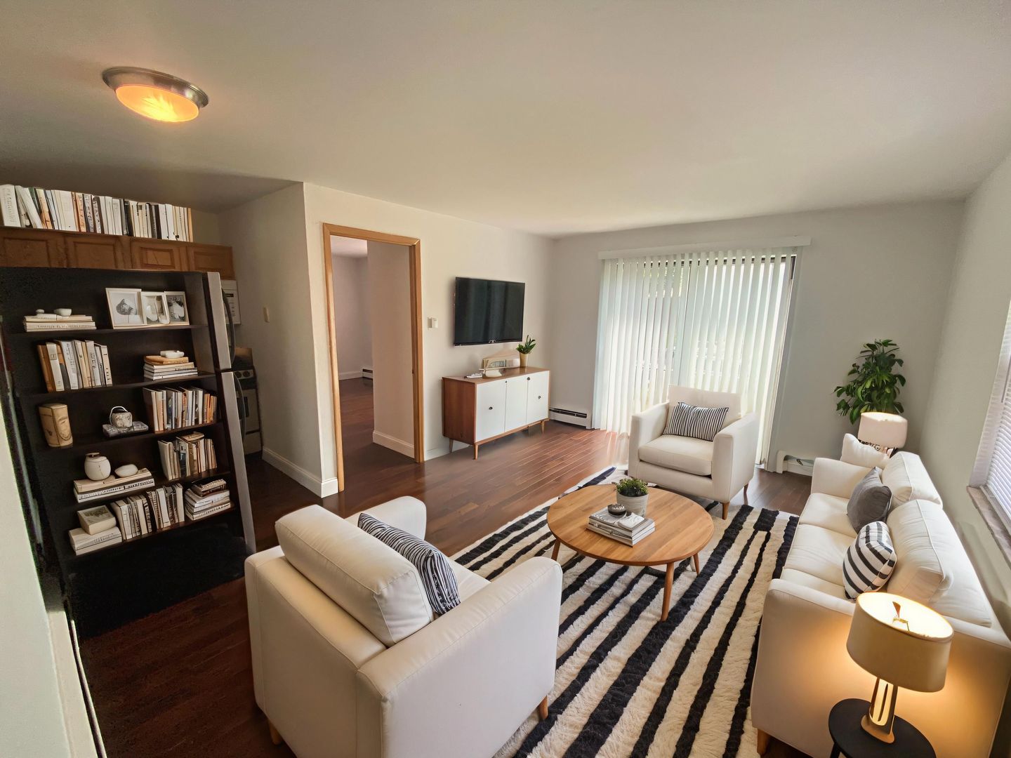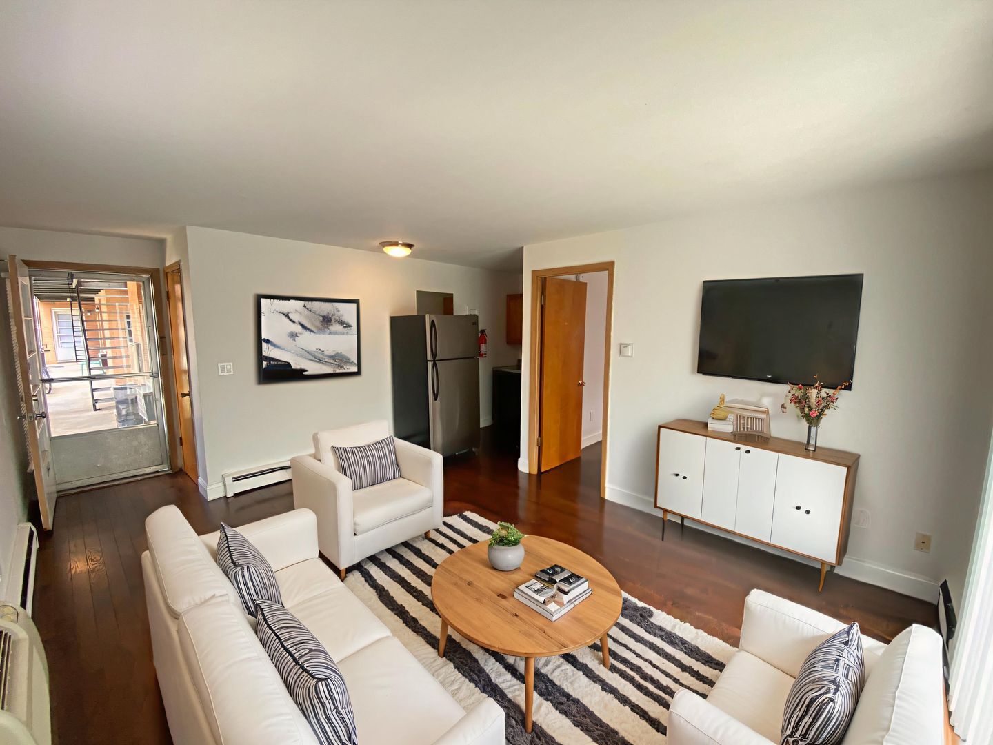 There is a washer/dryer on-site in the building, and optional limited off-street parking available for purchase. There is even a courtyard for the tenants’ use.
