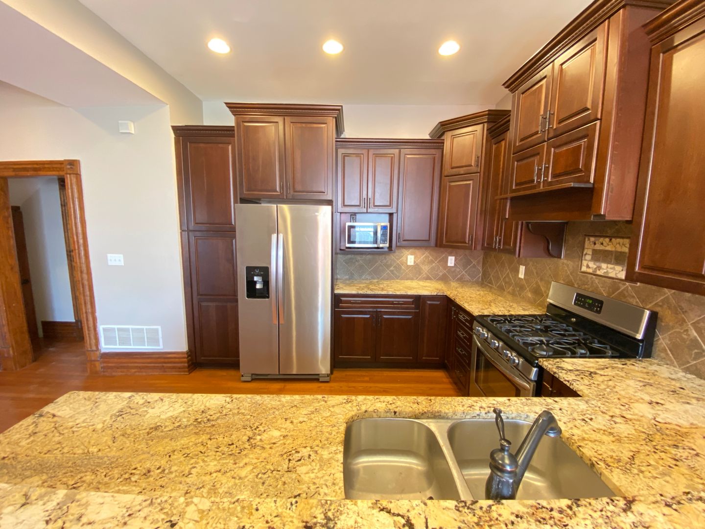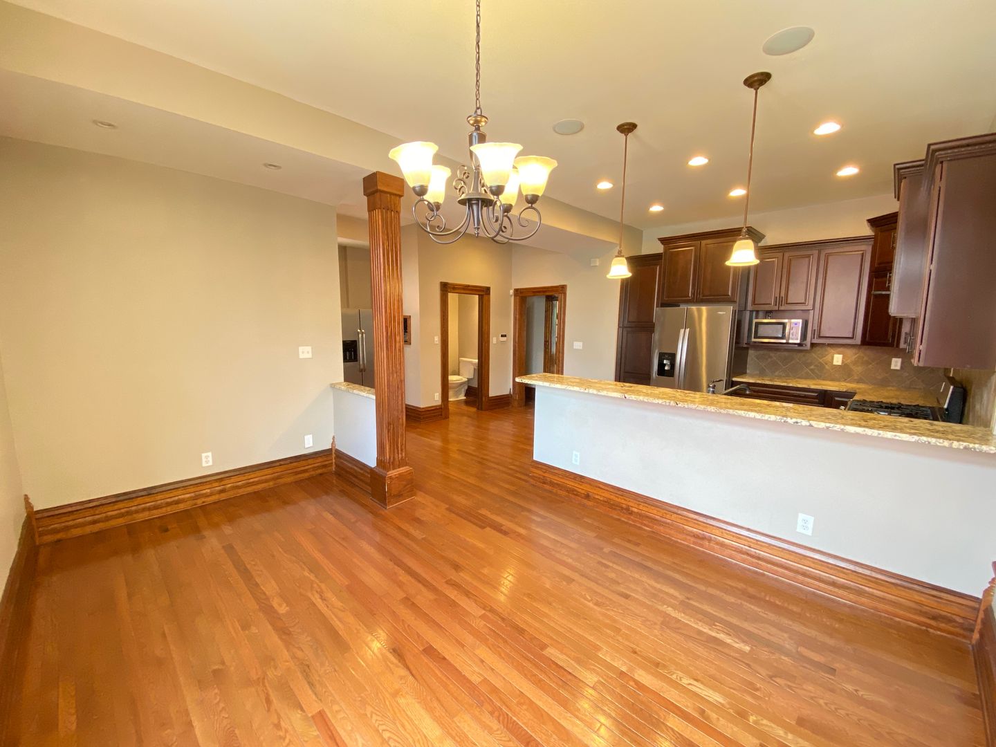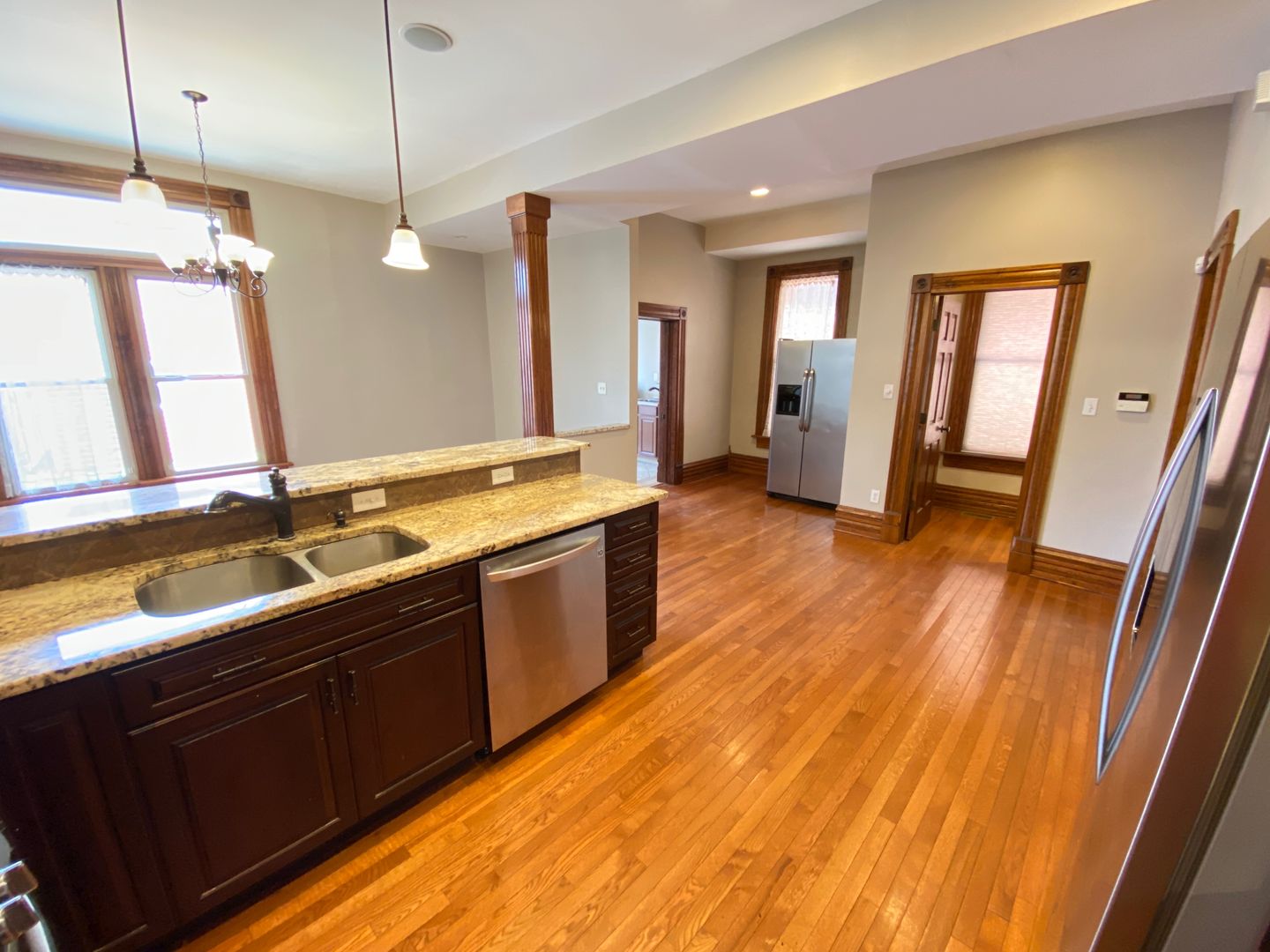 Very large, magnificently renovated kitchen with tall beautiful dark wood cabinets, granite counter-tops, and stainless steal appliances. Other amenities include hardwood floors, spacious living and dining area and 3.5 bathrooms with a jacuzzi tub, original woodwork and huge closets. Fenced in backyard with 2 car garage included. Very Close to Victorian Village - Short North and Ohio State University!