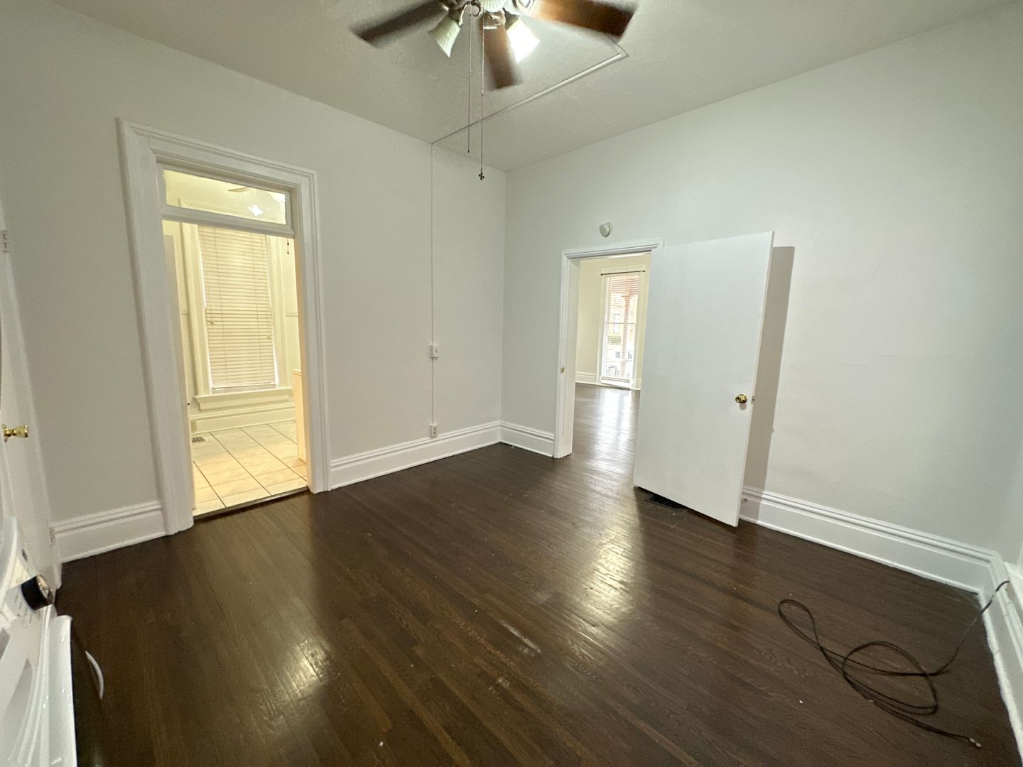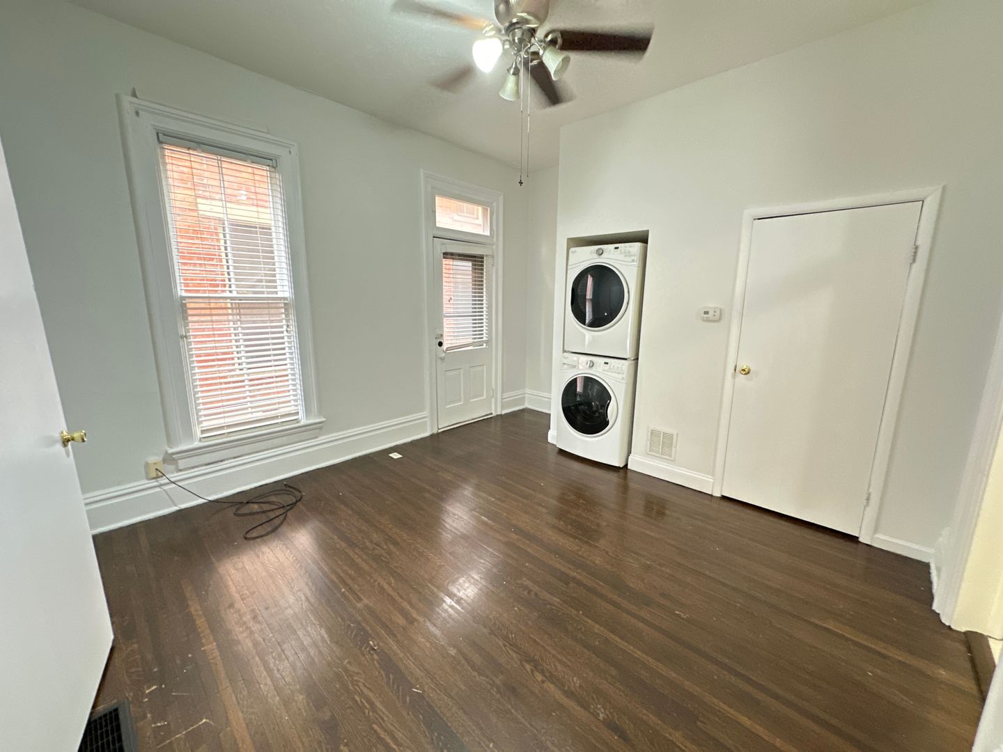 One bedroom flat with high ceilings, a decorative fireplace, beautiful hardwood floors and a private entrance. Kitchen comes will full stove/oven, refrigerator and built in microwave. There is a washer/dryer in the unit.
