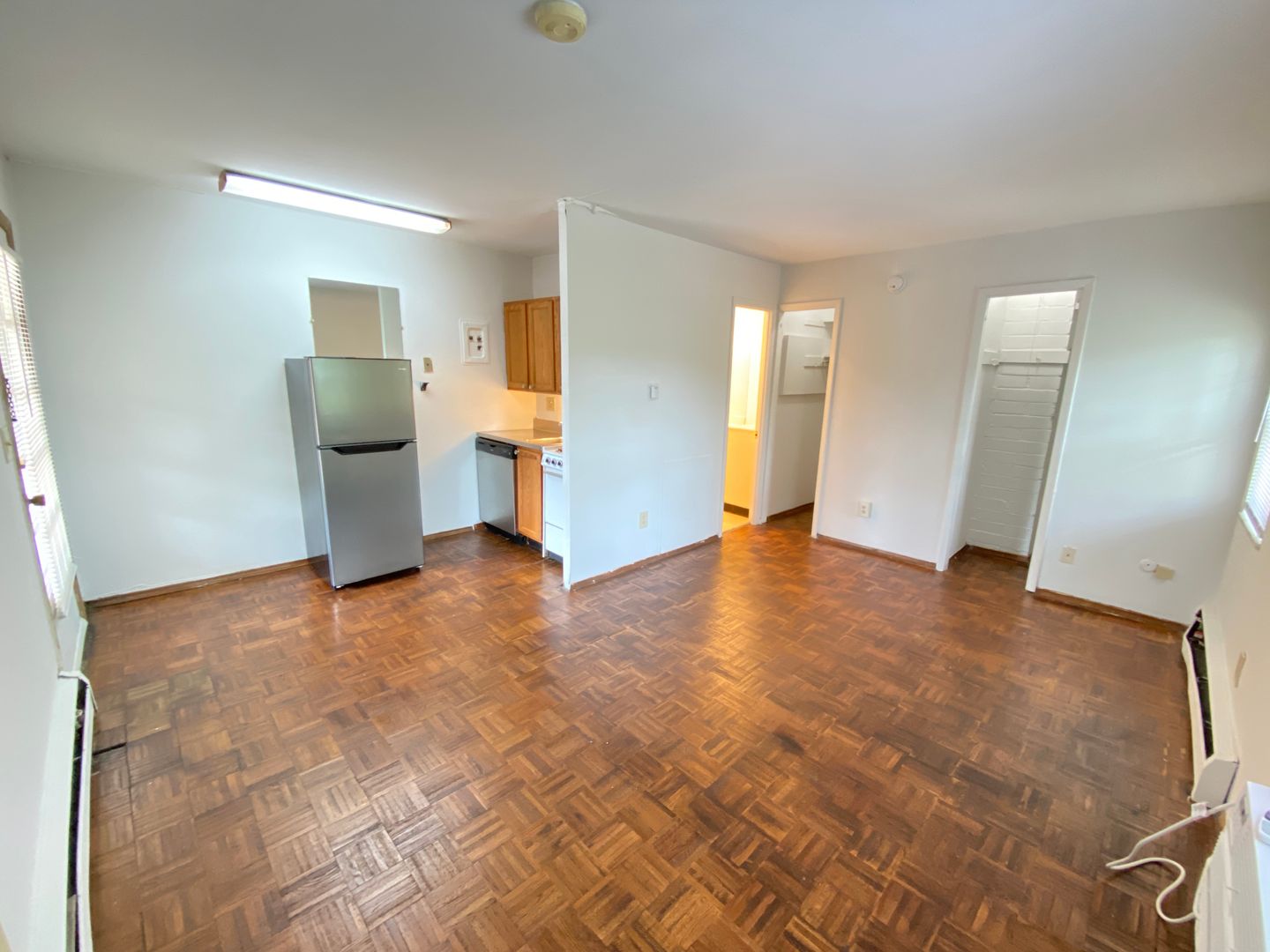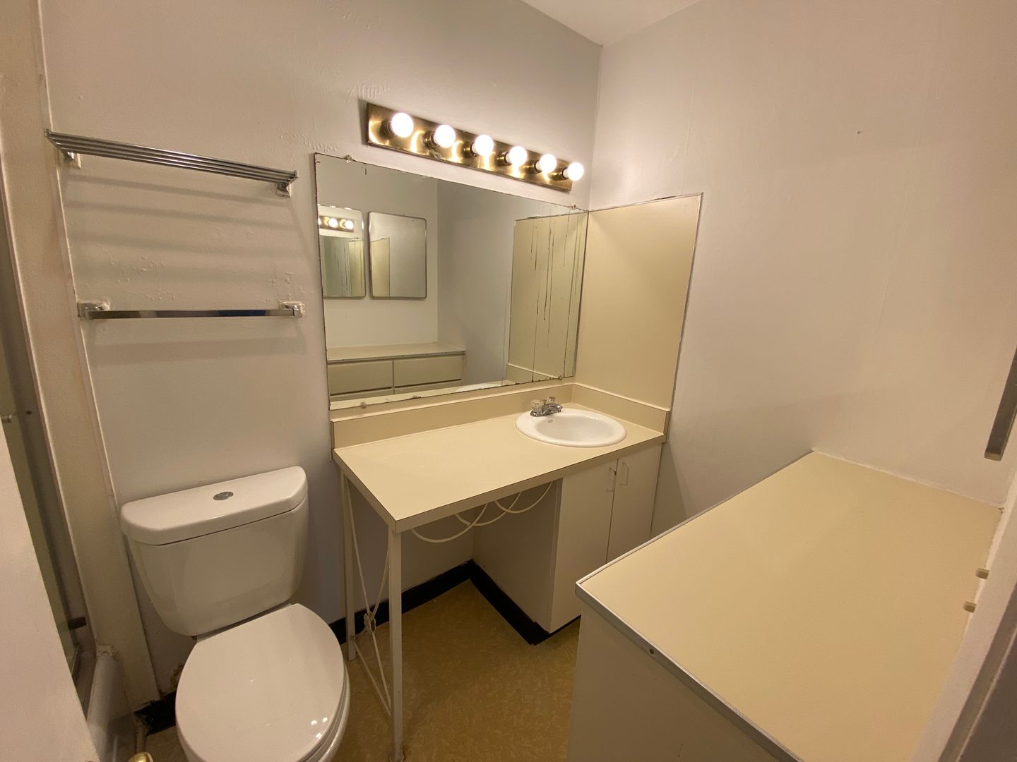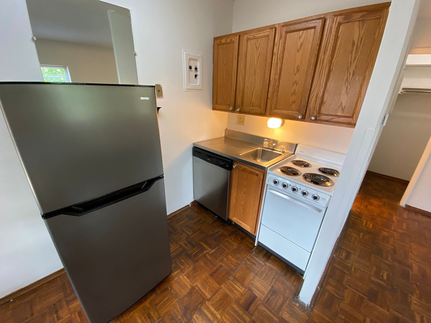 An efficiency-sized kitchen, and a full bathroom, this unit will have plenty of space for you to live alone and complete your studies. Kitchen features a dishwasher and refrigerator.