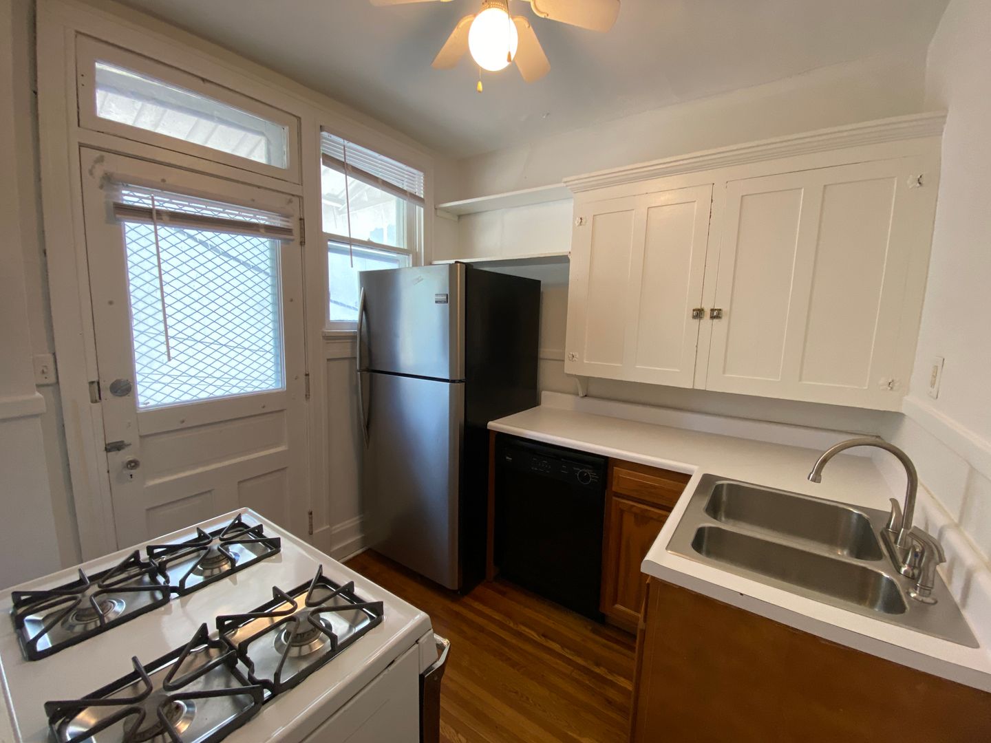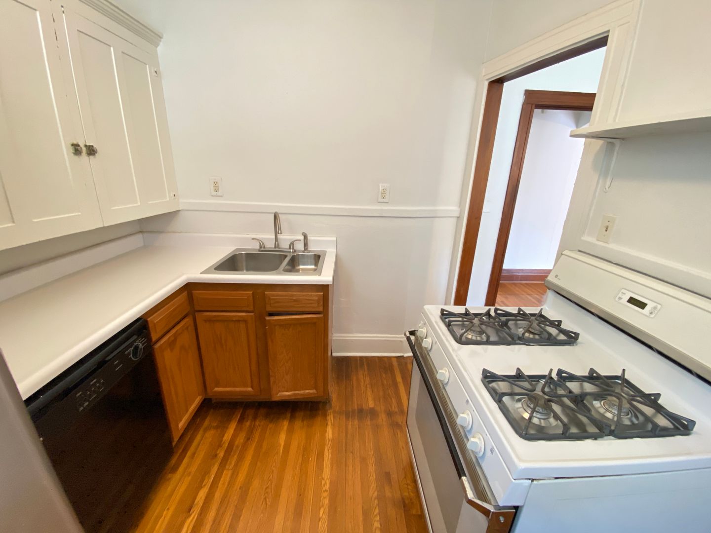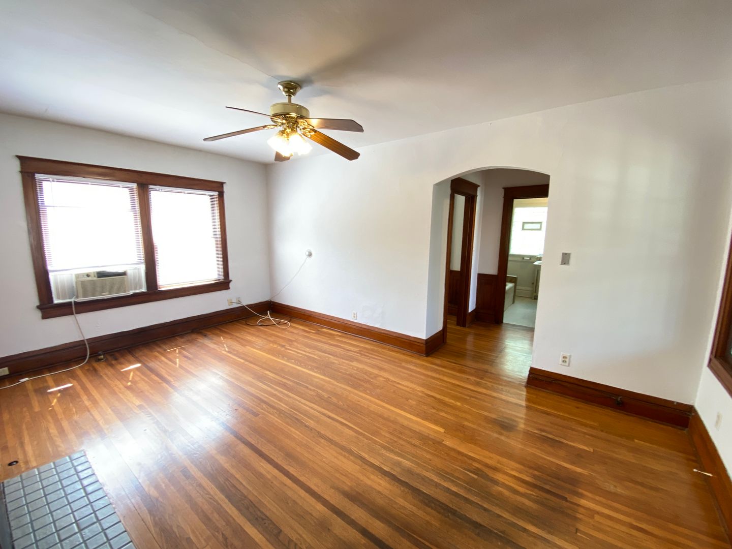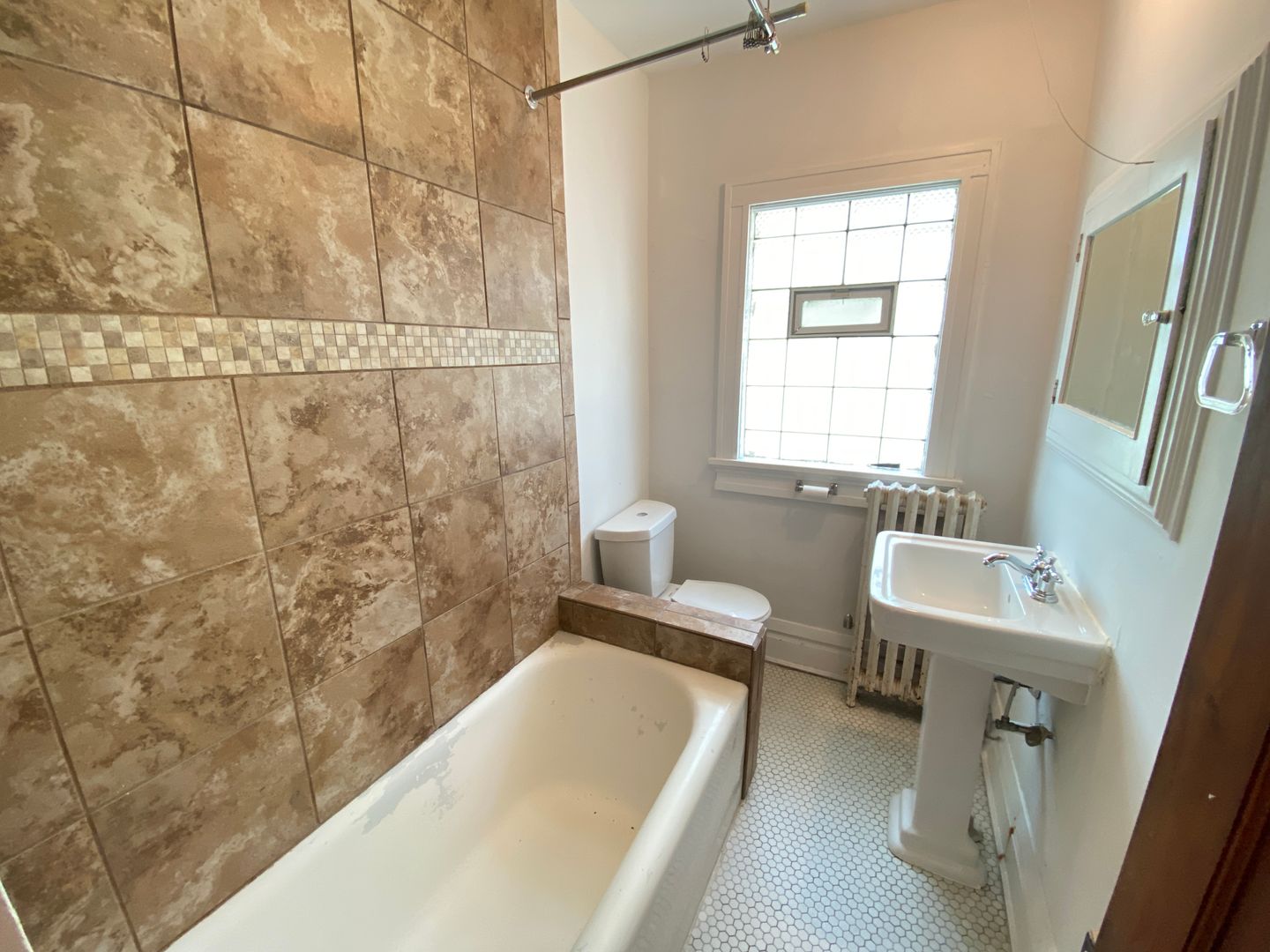 Lots of windows, ceramic tile, ceiling fans, mini blinds, refinished hardwood floors, and flat rate steam heat. Large basement with washer/dryer for the tenants’ use.