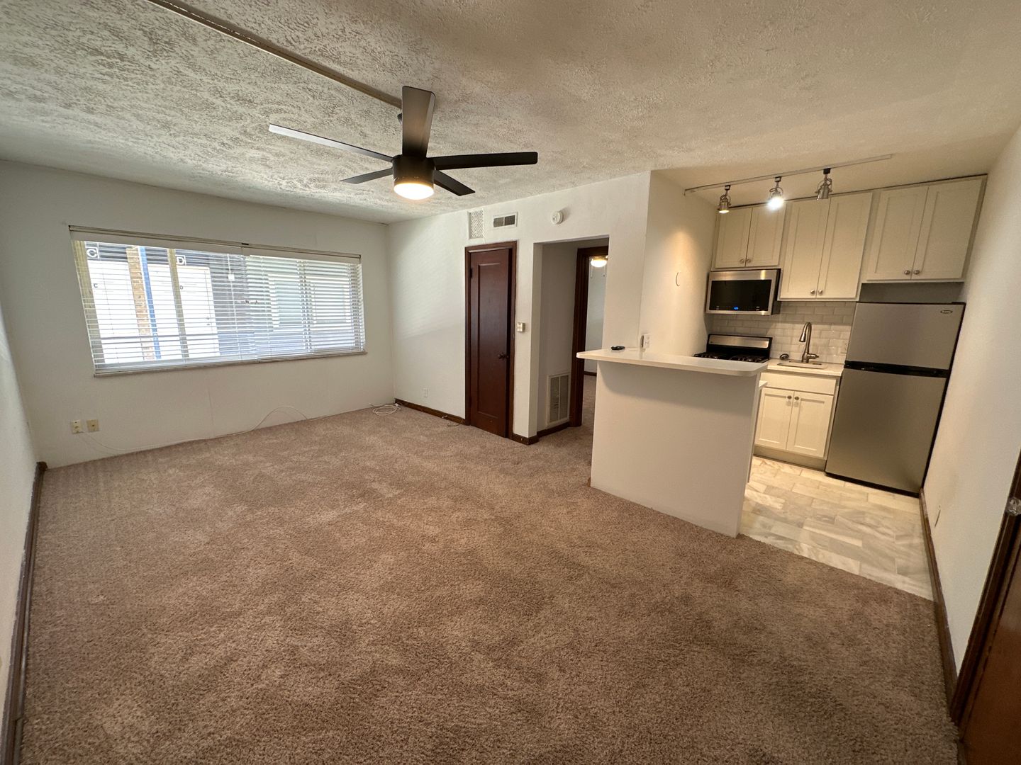 This large one-bedroom apartment is a 1st floor middle unit. A few steps away from Campus just north of Lane Avenue. Surprisingly quiet due to concrete block construction, this unit features large living room and bedroom, AC, and ceiling fan.
