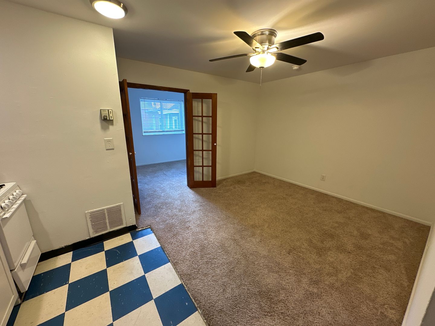 Located just four blocks north of Lane and west of High Street, this unit is ideal for one person. This 3rd-floor middle unit has a walk-in closet, ceiling fans, and French doors.