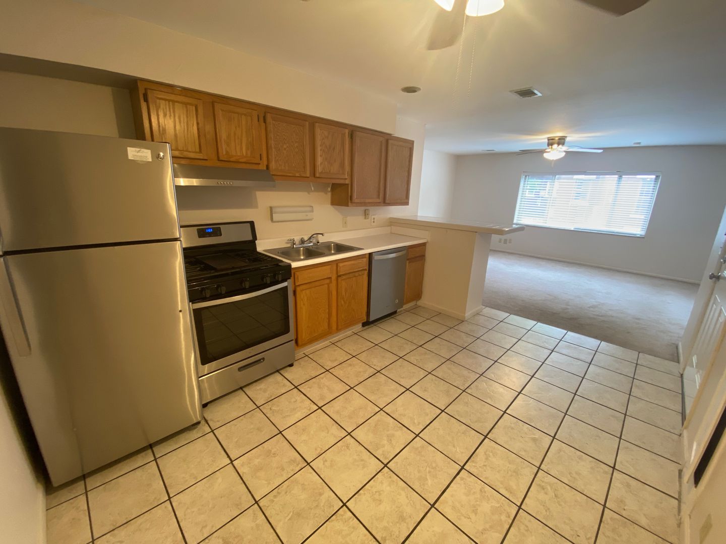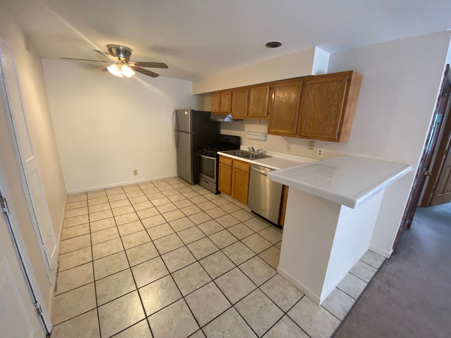 This apartment on the 2nd floor has a large, open floor plan with a dine-in kitchen.