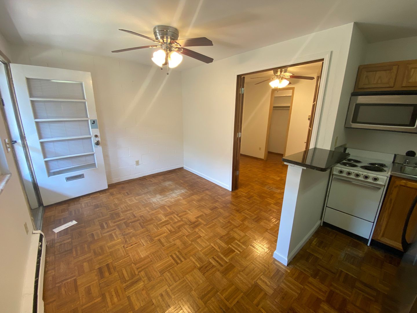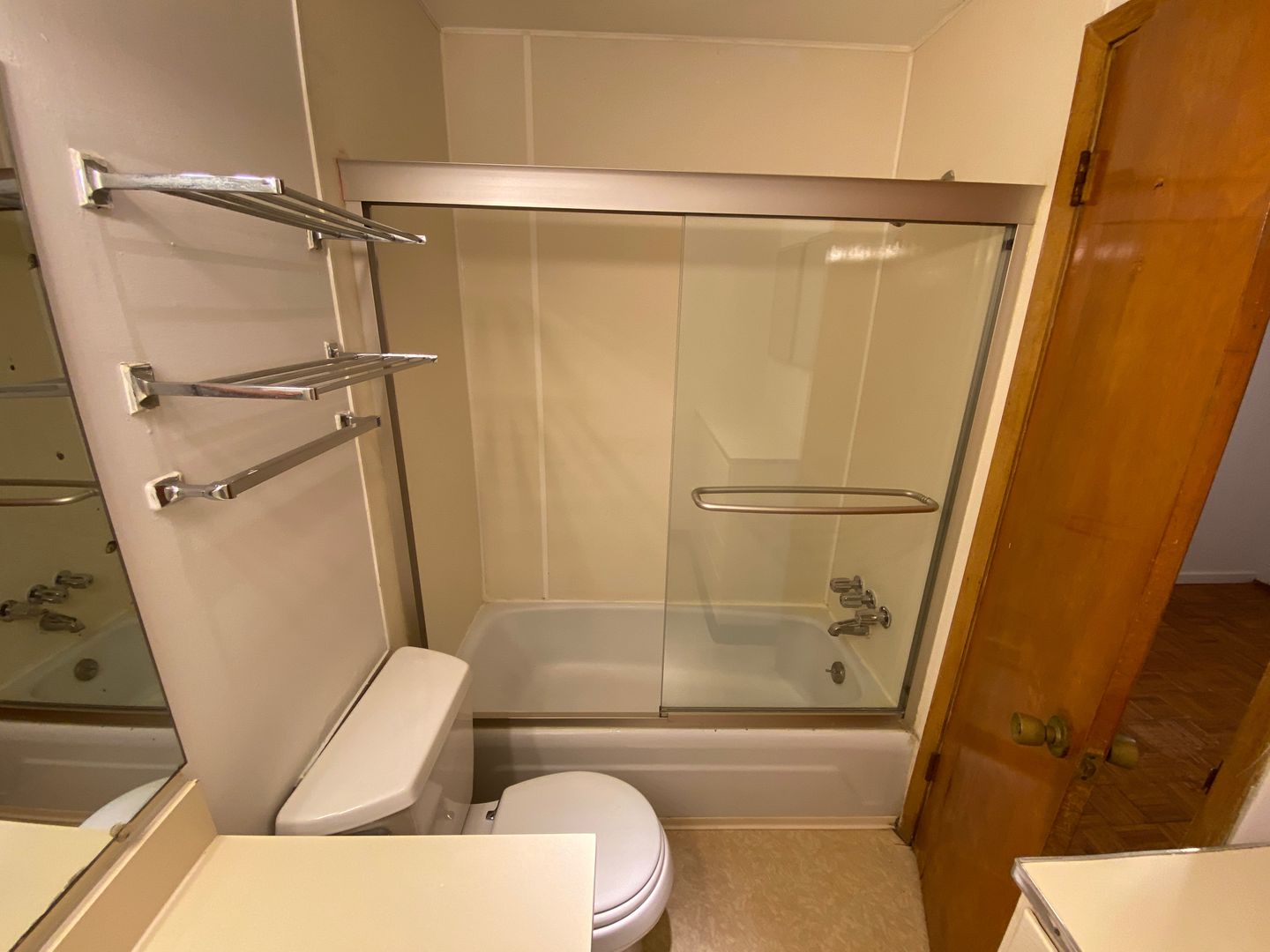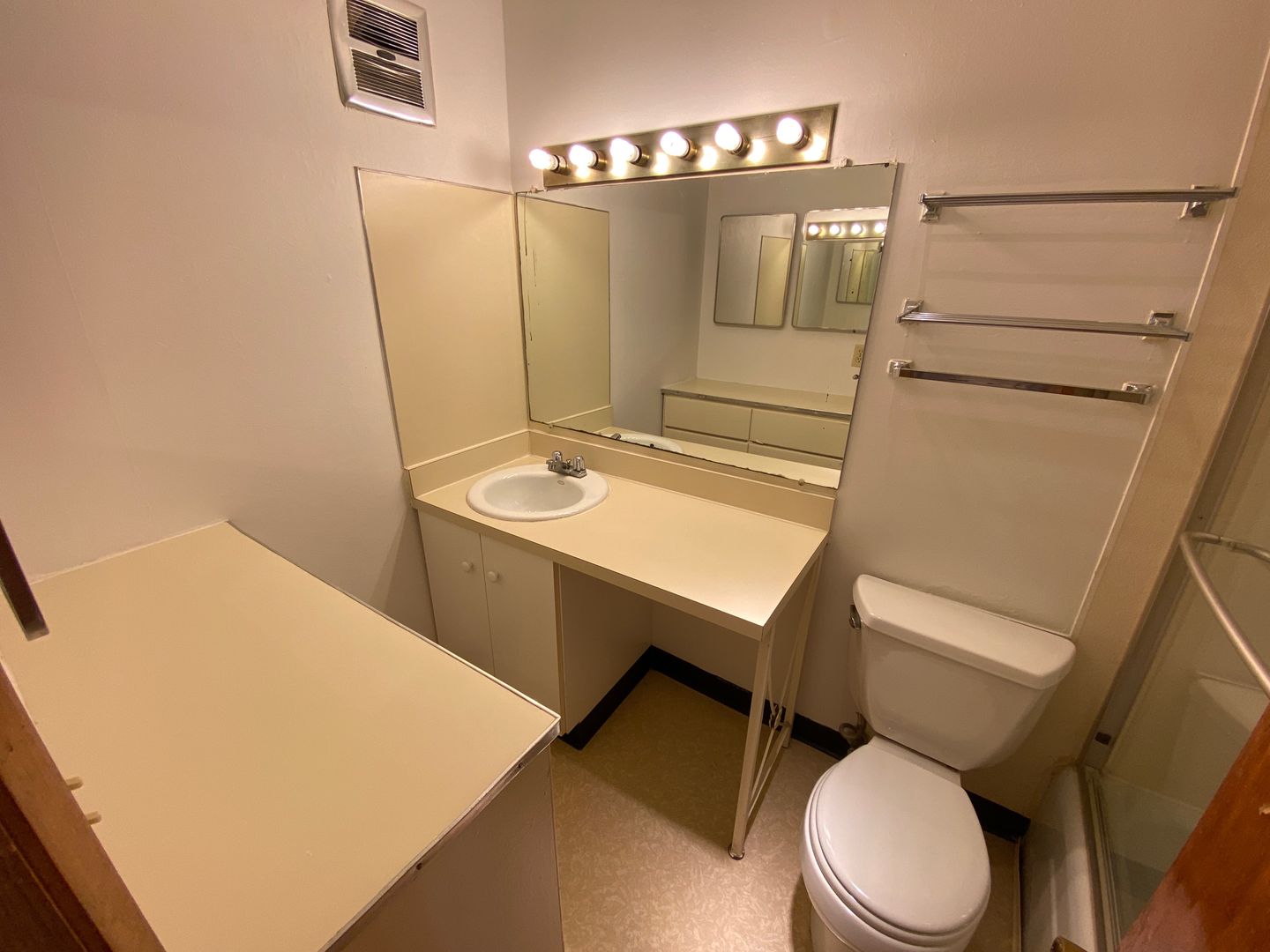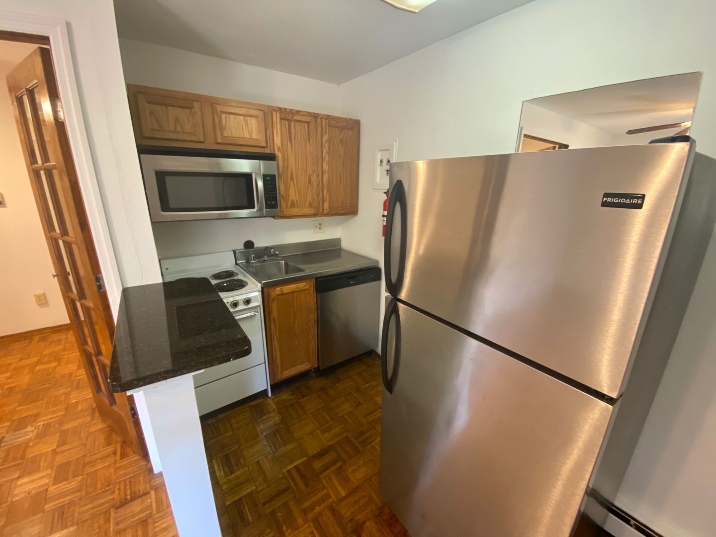 An efficiency-sized kitchen, and a full bathroom, this unit will have plenty of space for you to live alone and complete your studies. Kitchen features a granite breakfast bar, refrigerator, stove, built in microwave and dishwasher.