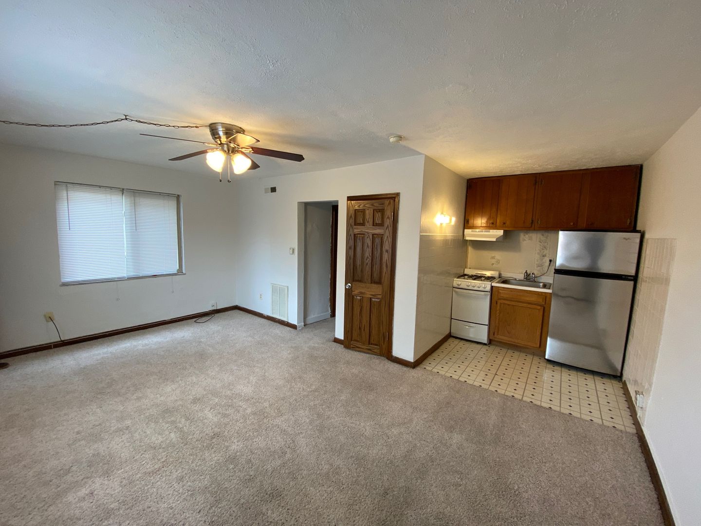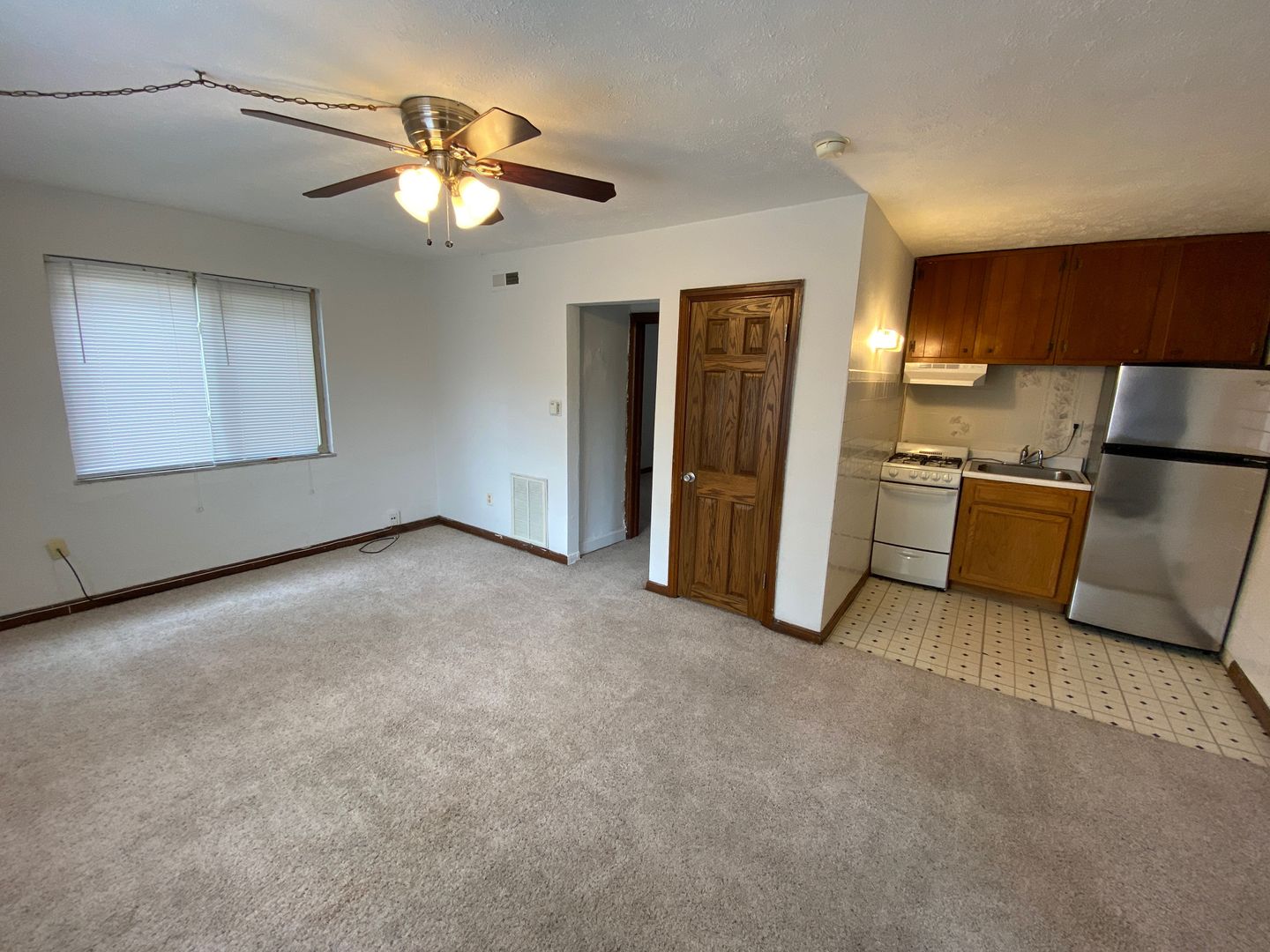 This large one-bedroom apartment is a 2nd floor corner unit. A few steps away from Campus just north of Lane Avenue. Surprisingly quiet due to concrete block construction, this unit features large living room and bedroom, A/C, and ceiling fan.