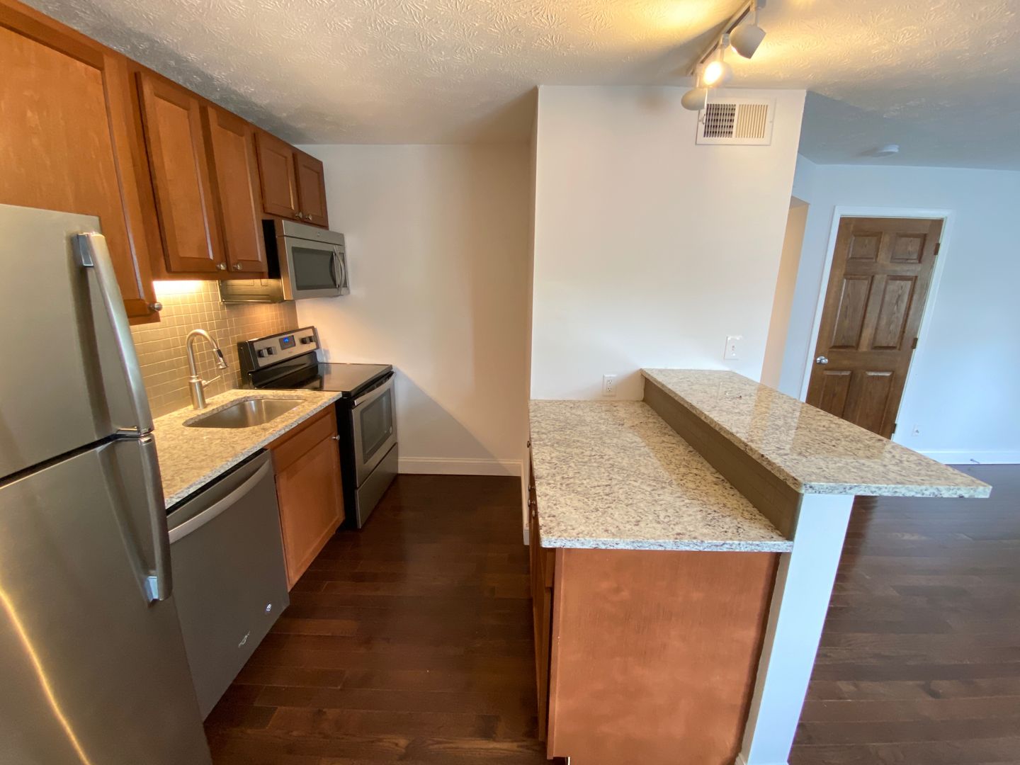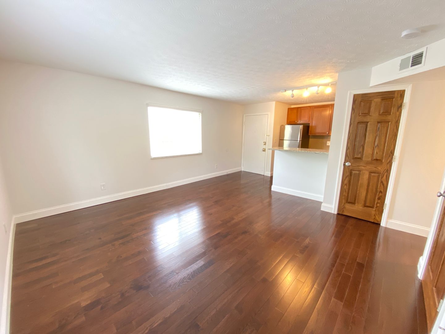 Short North - Victorian Village flat with off-street parking available for purchase, central air conditioning, located on a wonderful quiet and tree-lined street close to High Street. Stainless steel kitchen appliances with granite counter and bar tops, hardwood floor in the living room and carpet in the bedrooms, washer and dryer, renovated bathroom and a charming shared yard.
