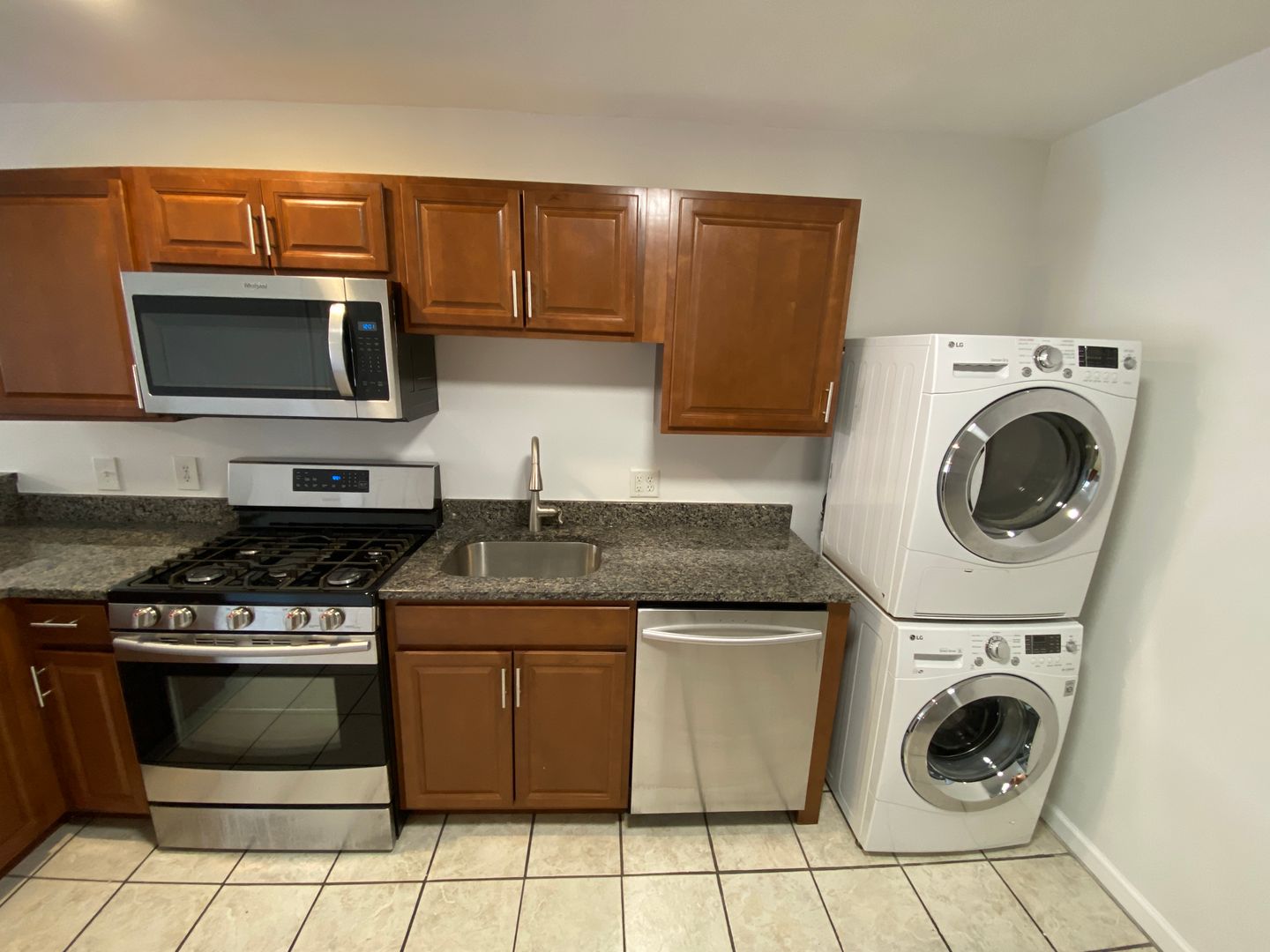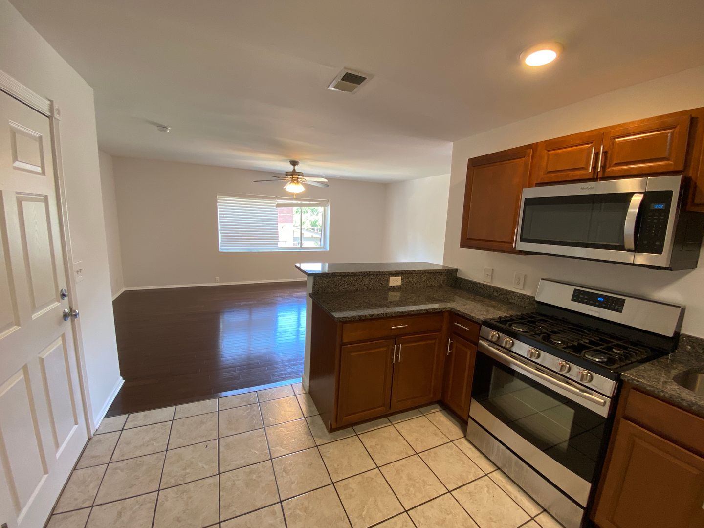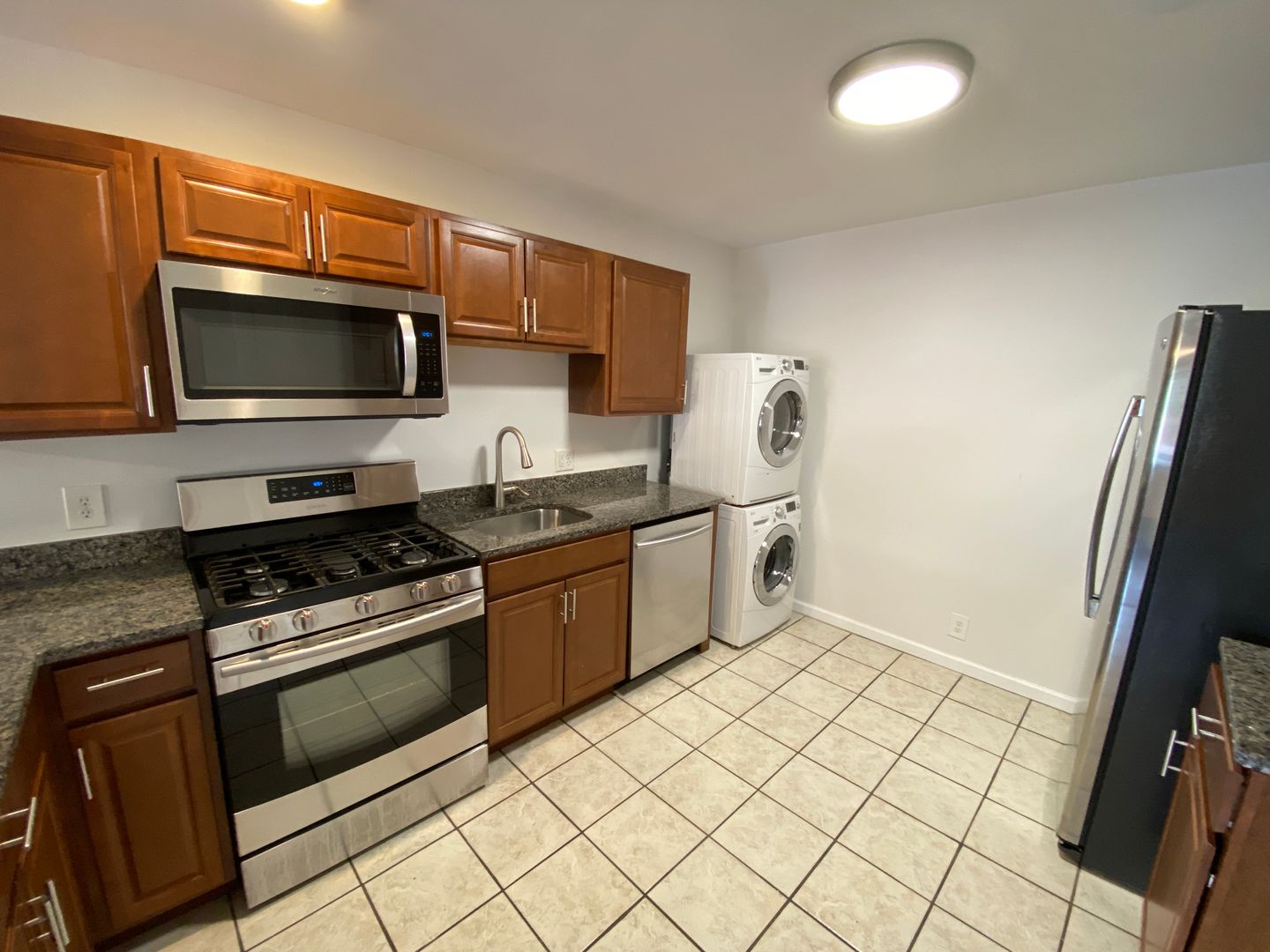 This apartment has a large, open floor plan with a dine-in kitchen with built in microwave, stainless steel appliances and stacked washer/dryer. Great granite counter tops and ceramic tile flooring.