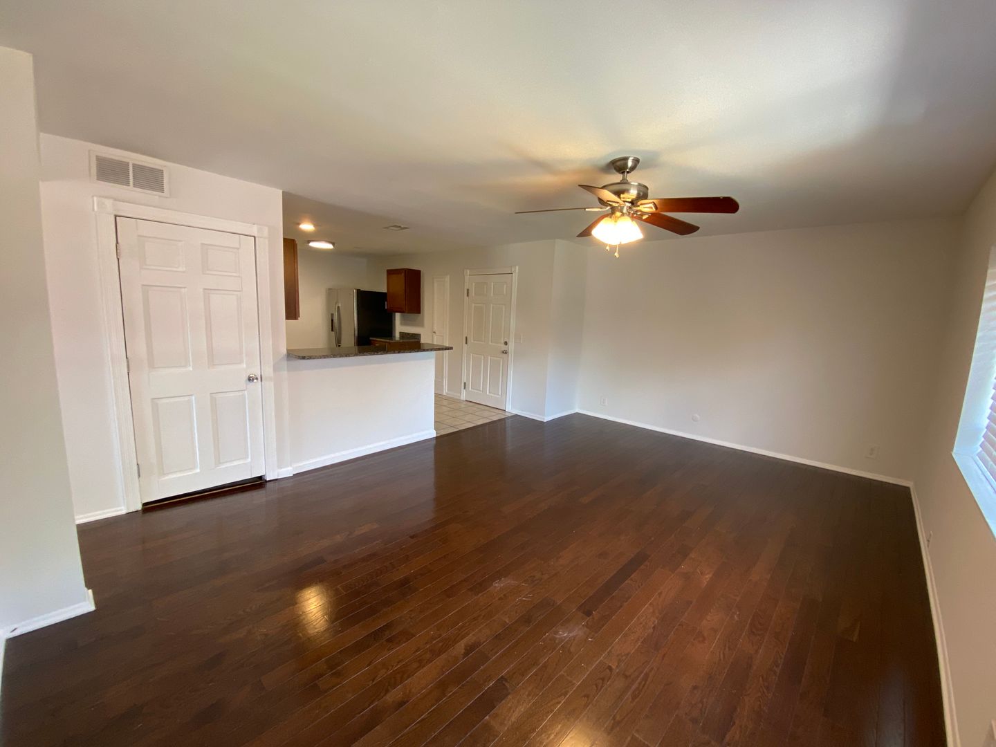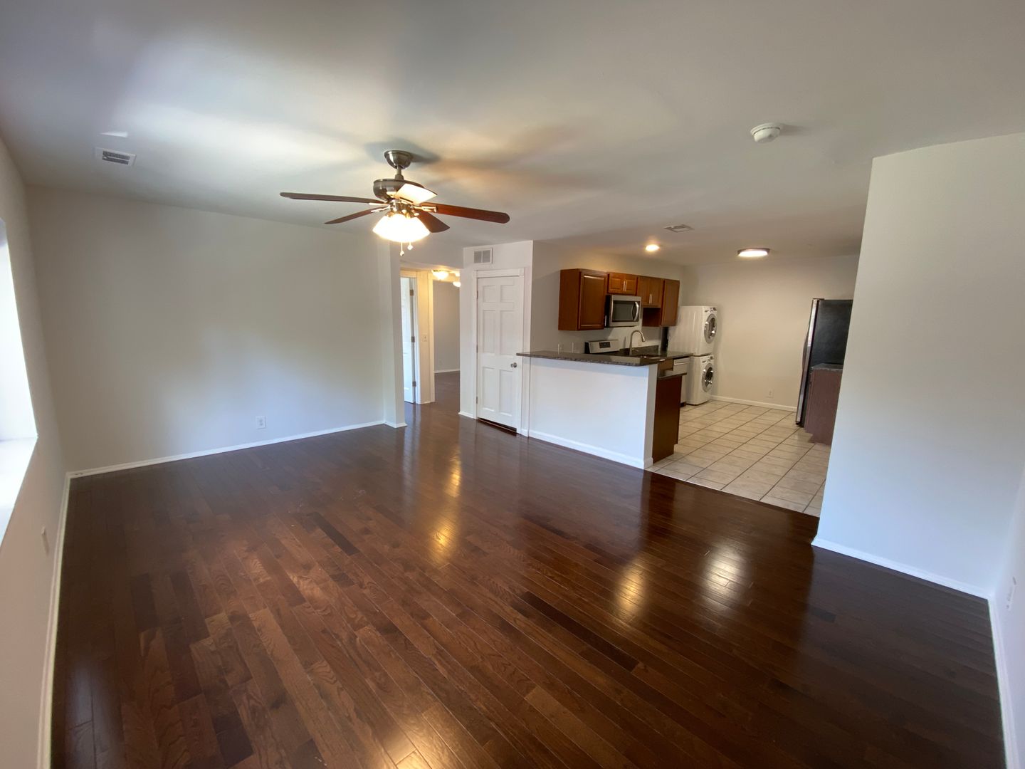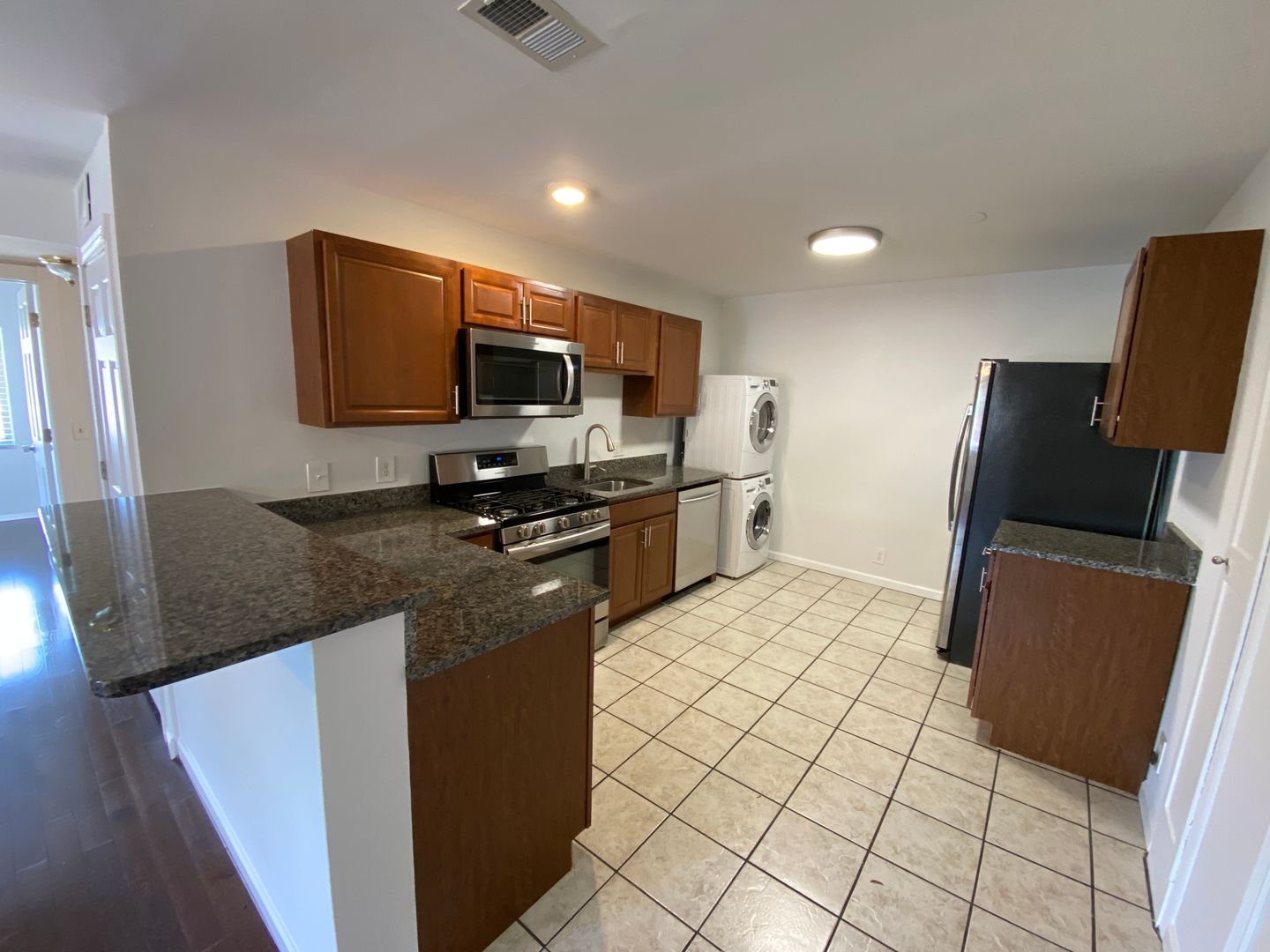 This apartment has a large, open floor plan with a dine-in kitchen with built in microwave, stainless steel appliances and stacked washer/dryer. Great granite counter tops and ceramic tile flooring.