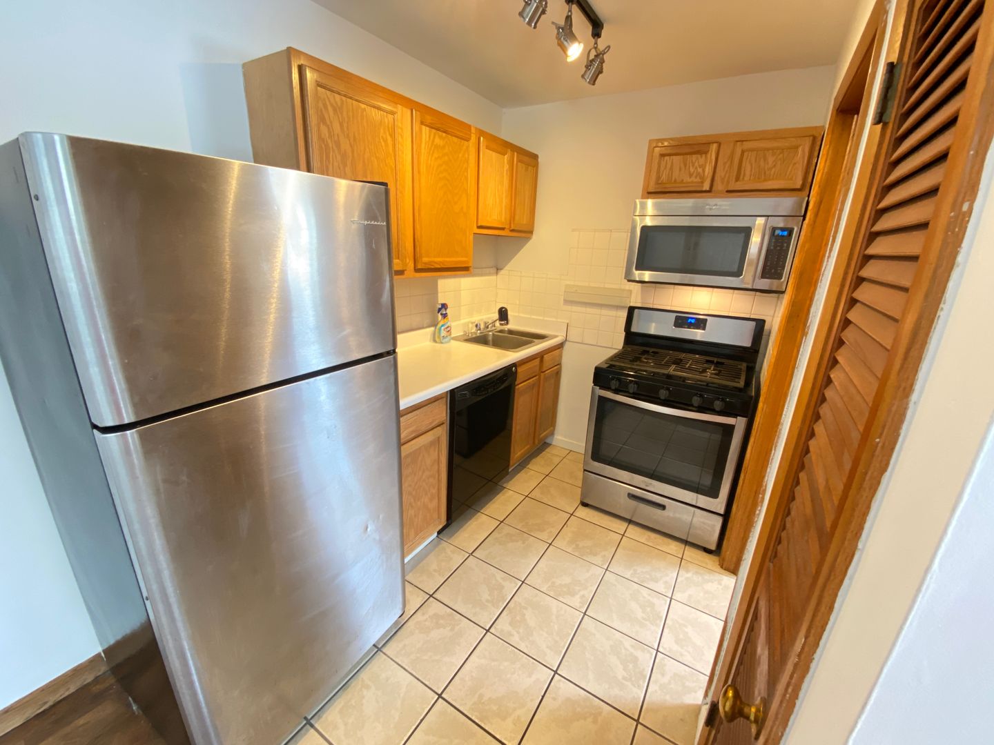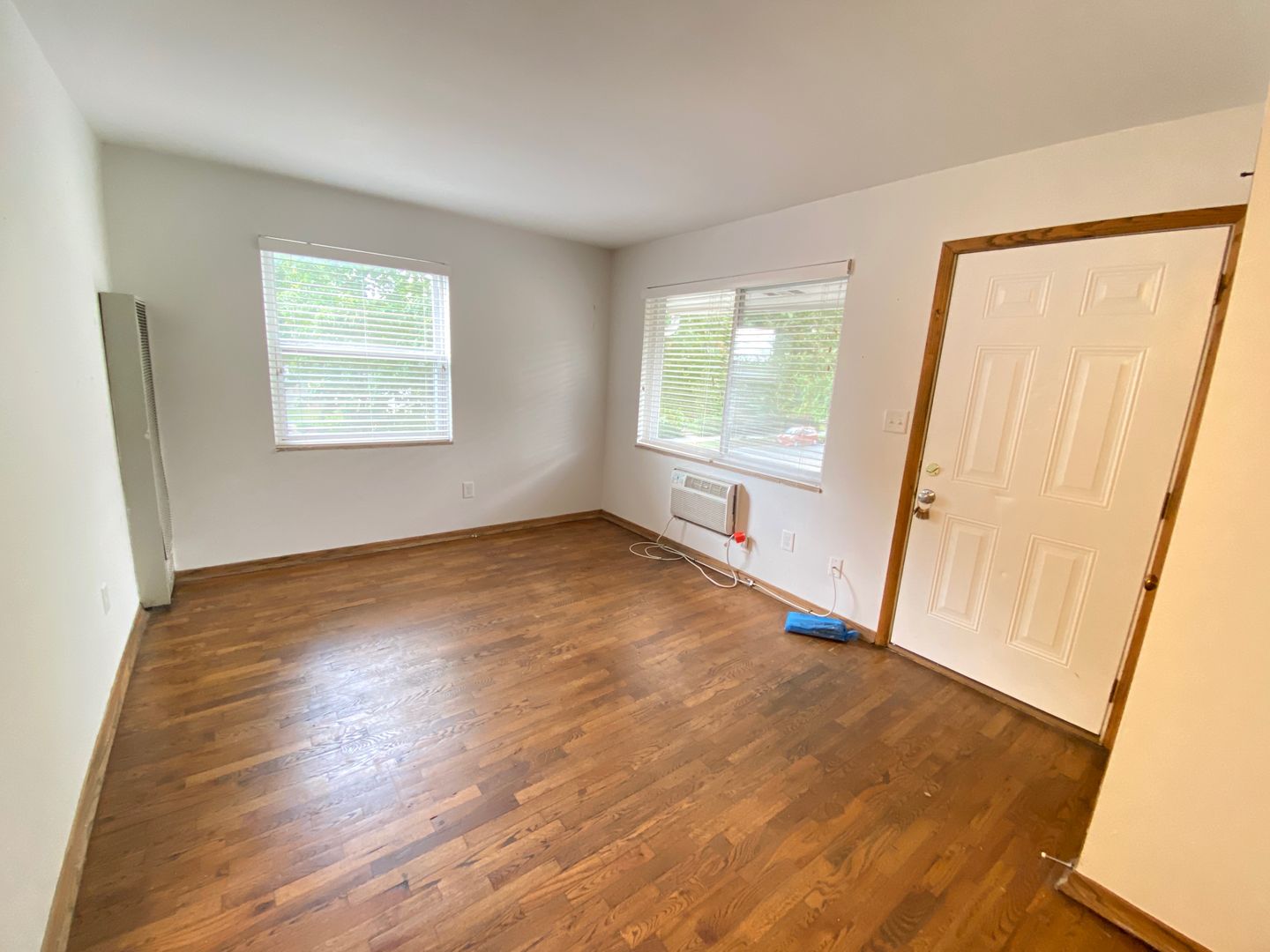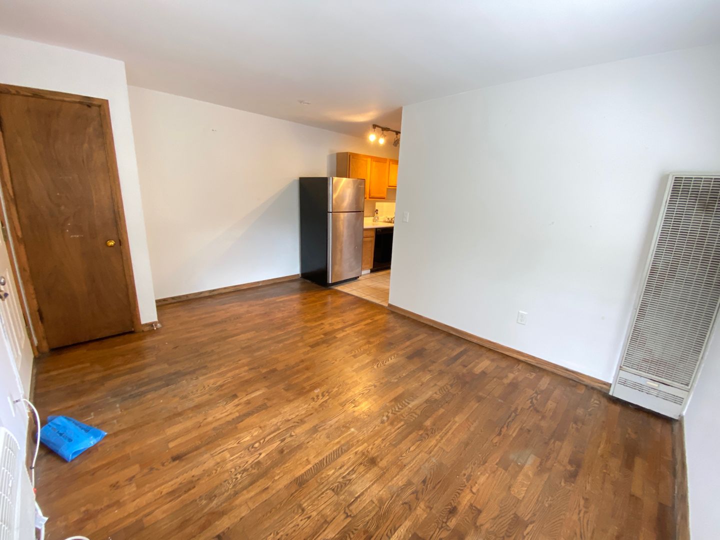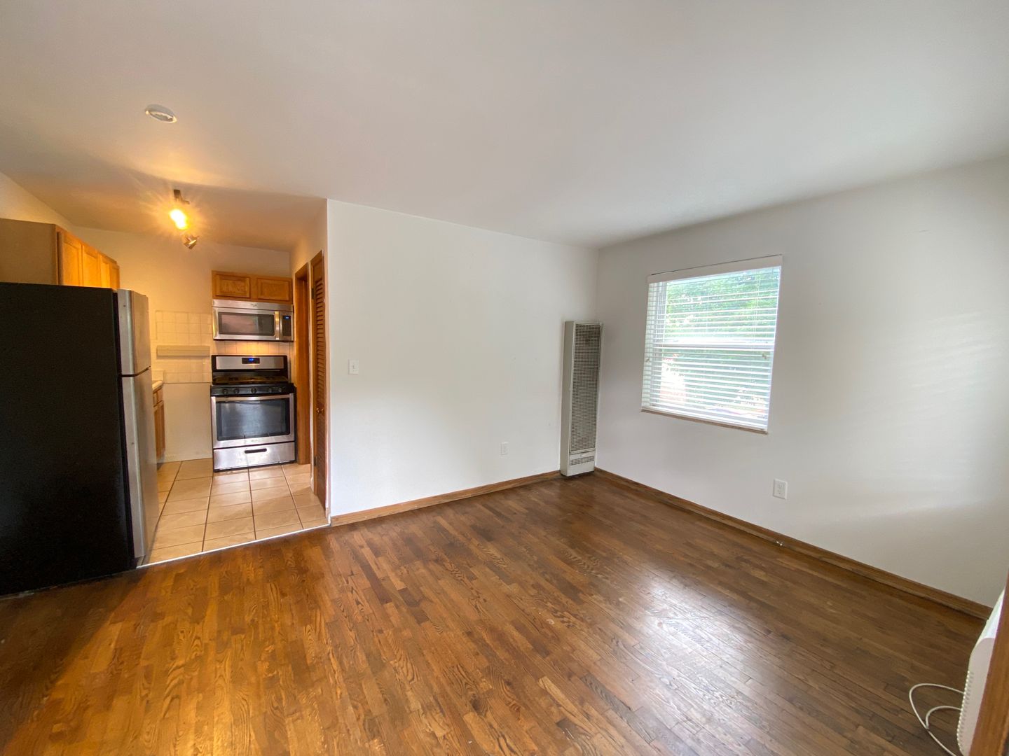 This is a standard flat with a nice living room that opens up to the kitchen. Spacious closet in the bedroom and a bathroom with shower and tub. Some updates include a built-in microwave, hardwood, and off-street parking is available for purchase. Hurry, this will definitely go fast at this price!