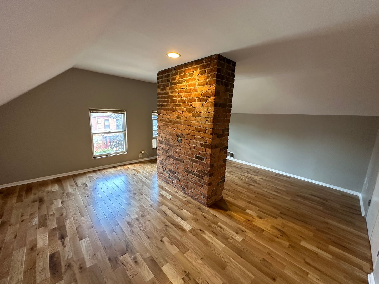 This is a 4 bedroom townhouse! Open kitchen and living room floor plan with hardwood floors, vaulted ceilings, exposed brick and dimming can lights. This unit is on the 2nd and 3rd floor of the building. Portable front door buzzer remote included.