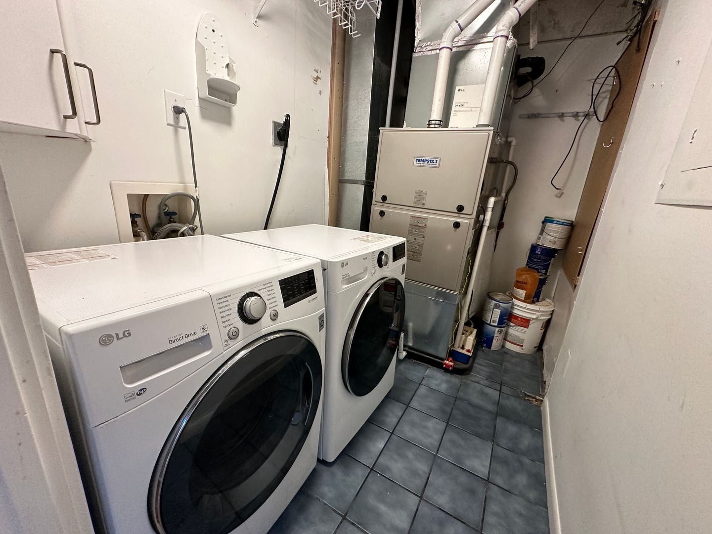 Laundry room with storage. 2nd floor bath with exposed brick and steam shower.