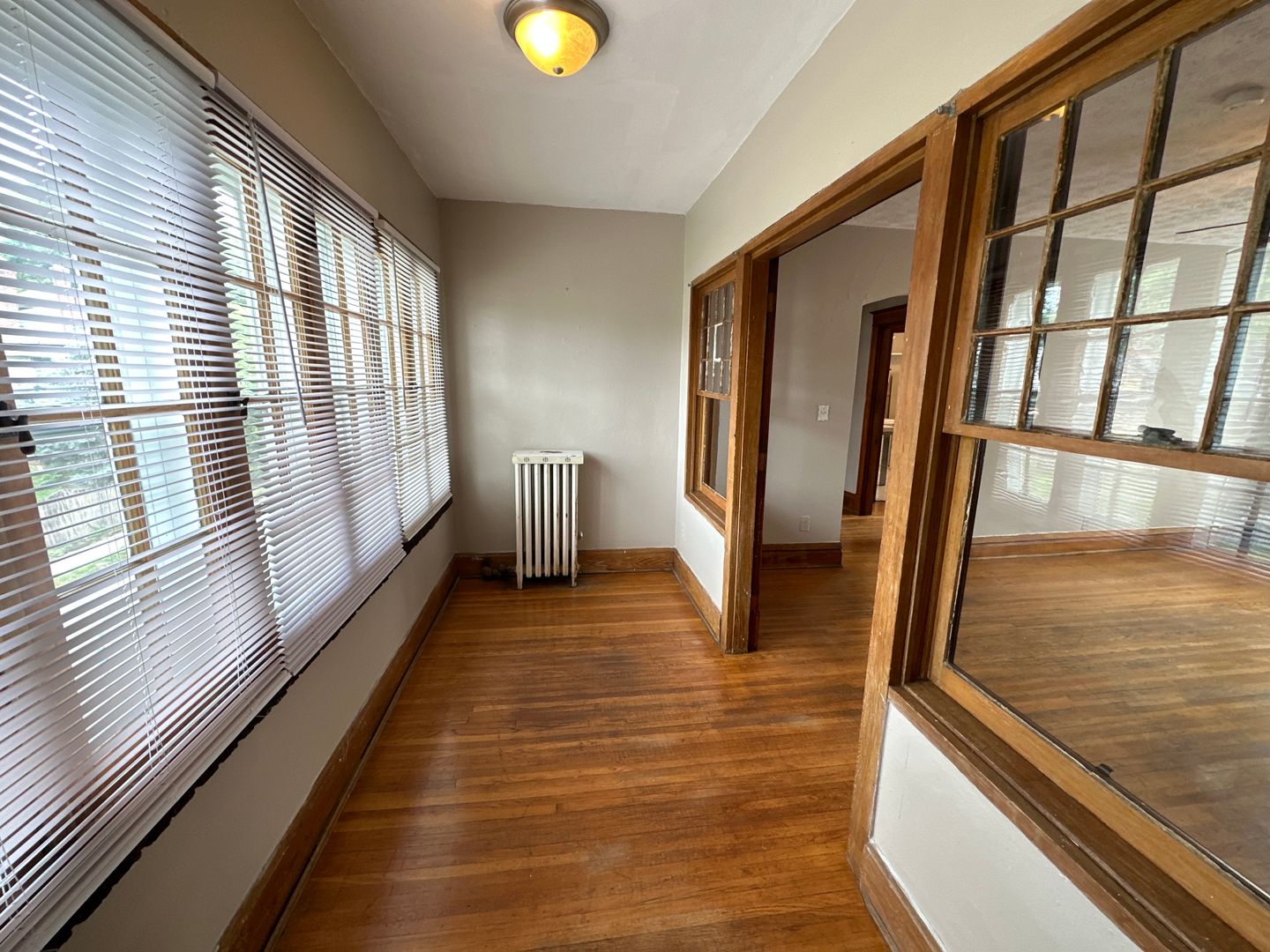 A beautiful living environment! Located on a quiet street, this apartment includes a four- season sunroom, a kitchen with built-in table in the dining room, lots of windows, ceramic tile, ceiling fans, and refinished hardwood floors.