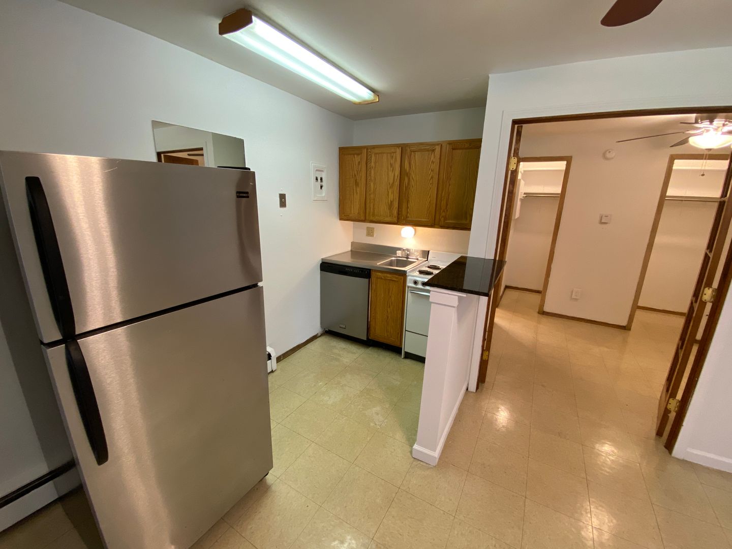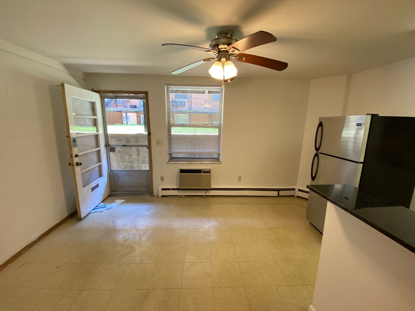 An efficiency-sized kitchen, French doors and a full bathroom, this unit will have plenty of space for you to live alone and complete your studies. Kitchen features a refrigerator, stove, and dishwasher.