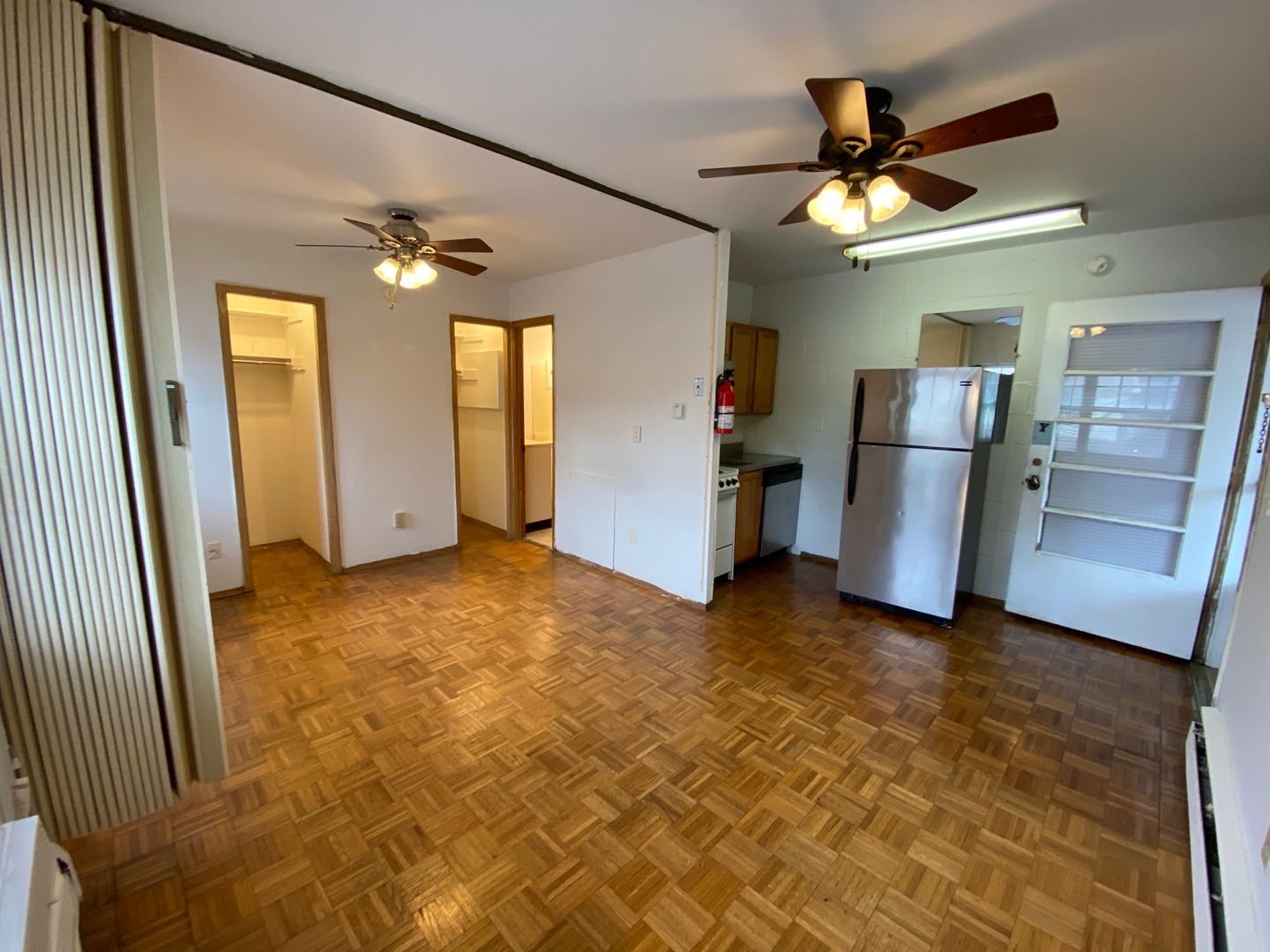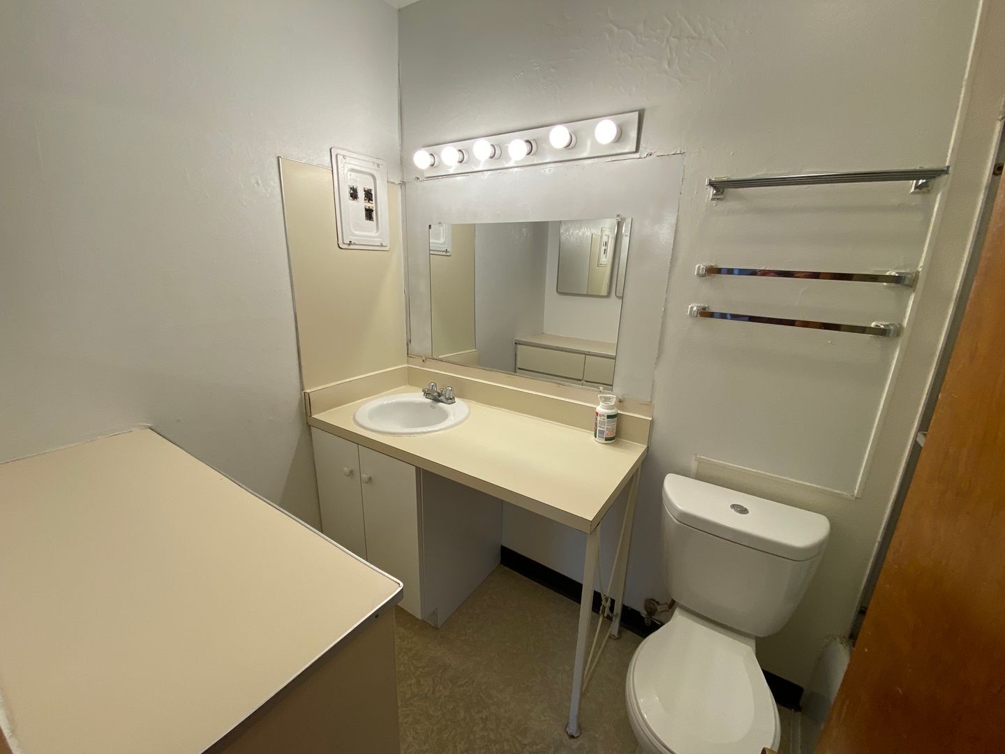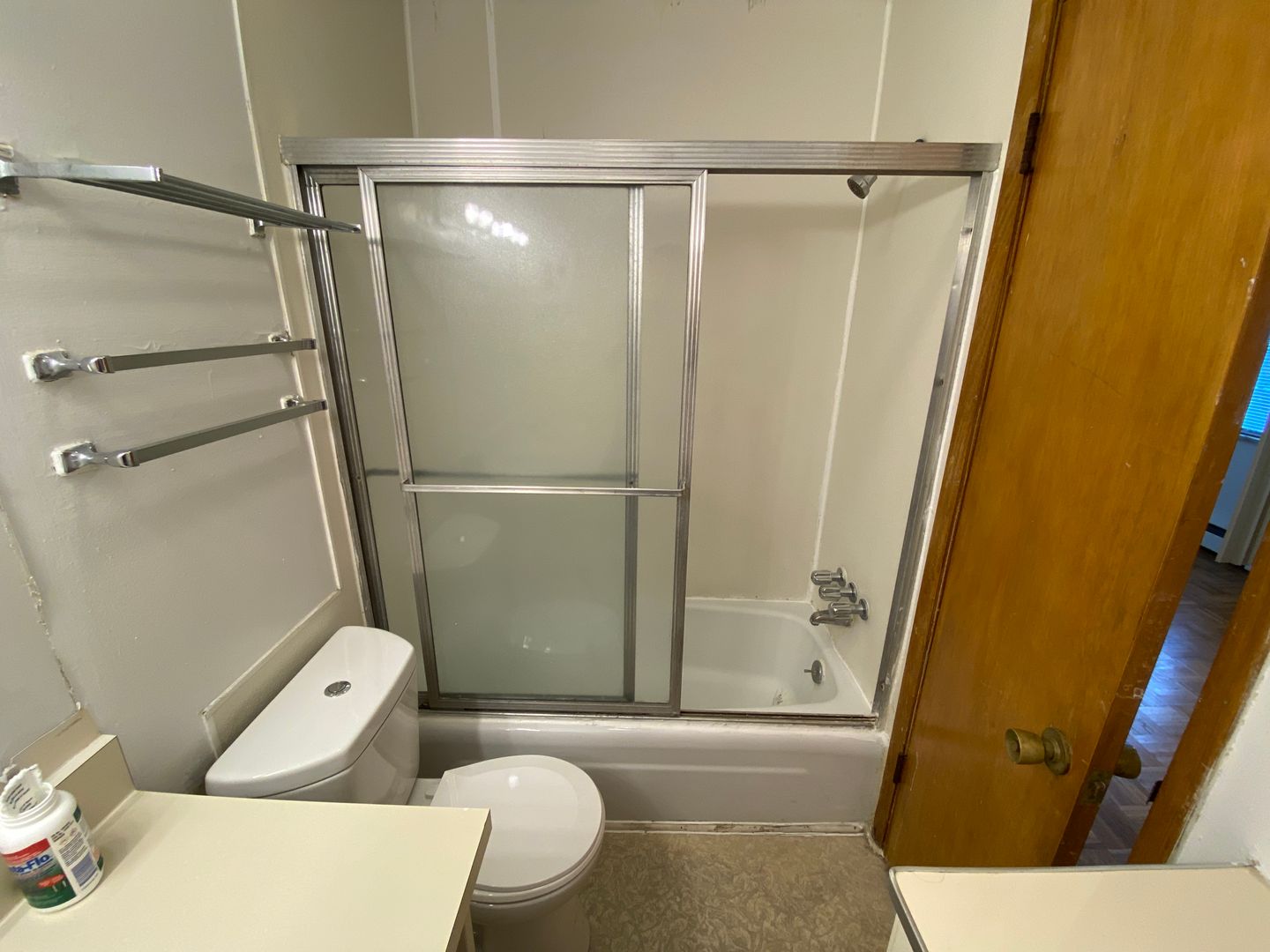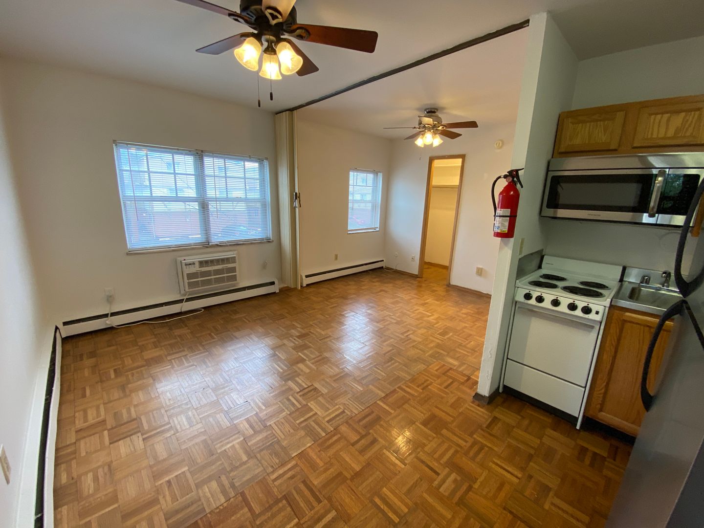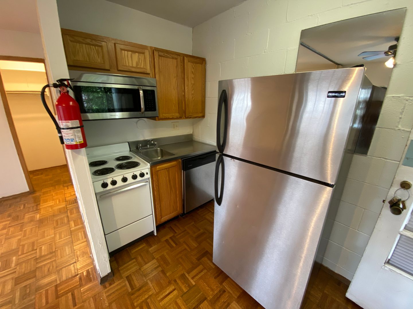 An efficiency-sized kitchen, and a full bathroom, this unit will have plenty of space for you to live alone and complete your studies. Kitchen features a dishwasher and refrigerator.