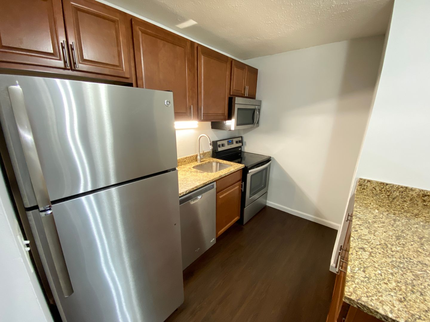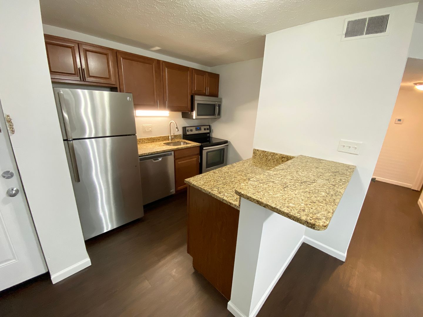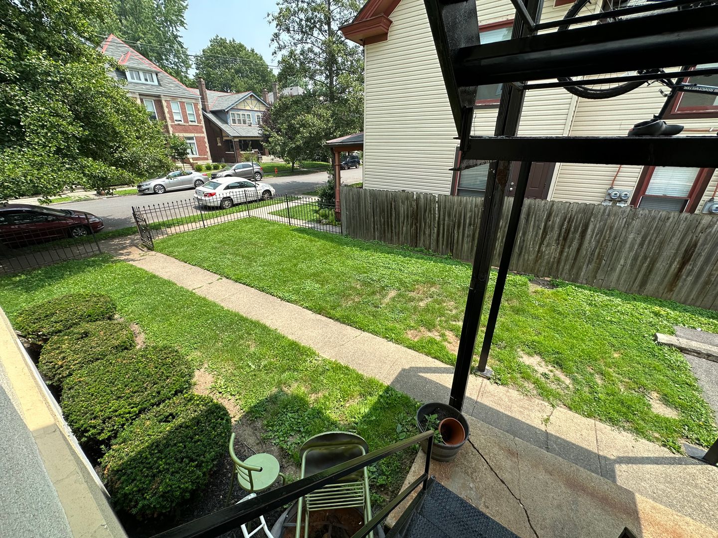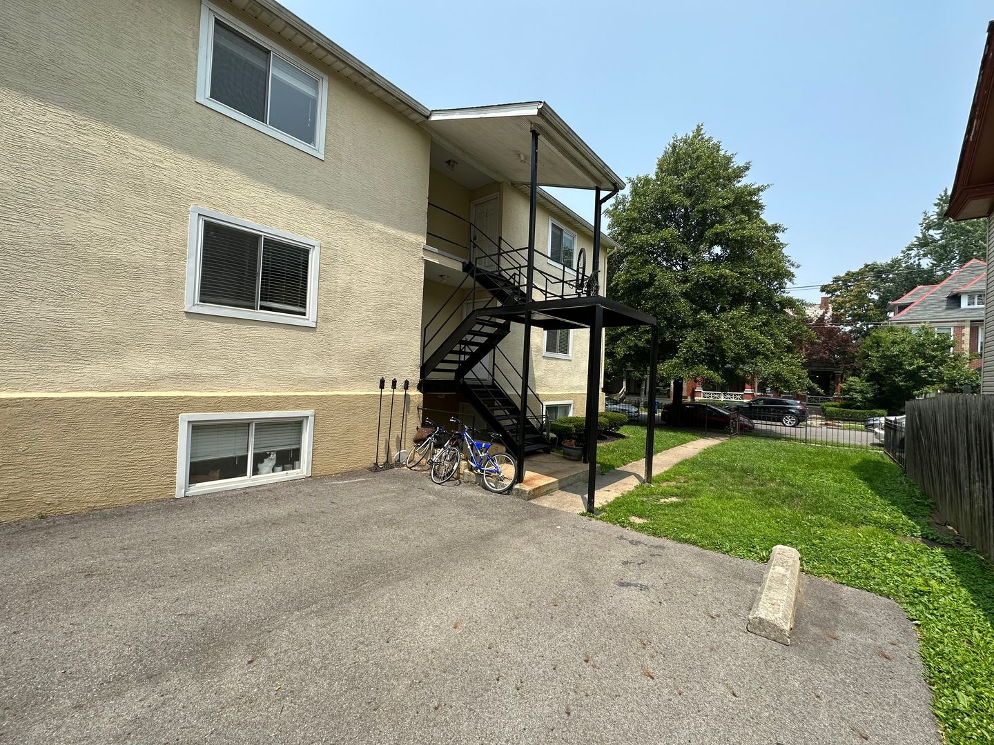 Short North - Victorian Village flat with off-street parking available for purchase, central air conditioning, located on a wonderful quiet and tree-lined street close to High Street. Stainless steel kitchen appliances with granite counter and bar tops, hardwood floor in the living room and carpet in the bedrooms, washer and dryer, renovated bathroom and a charming shared yard.