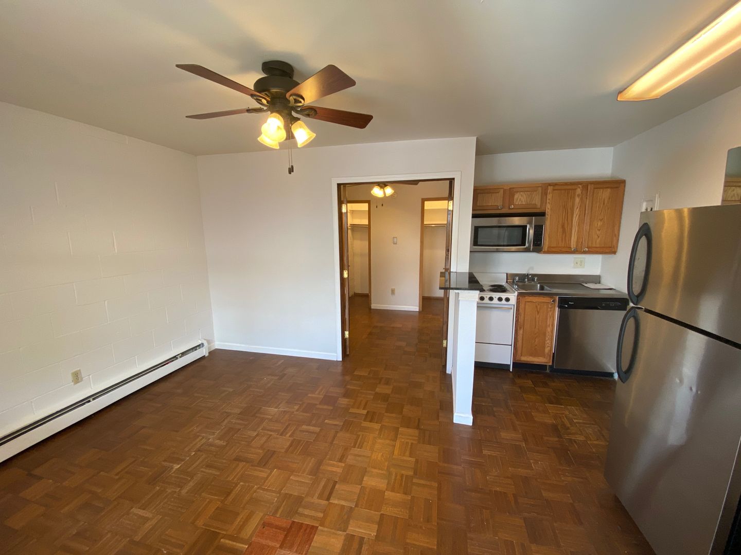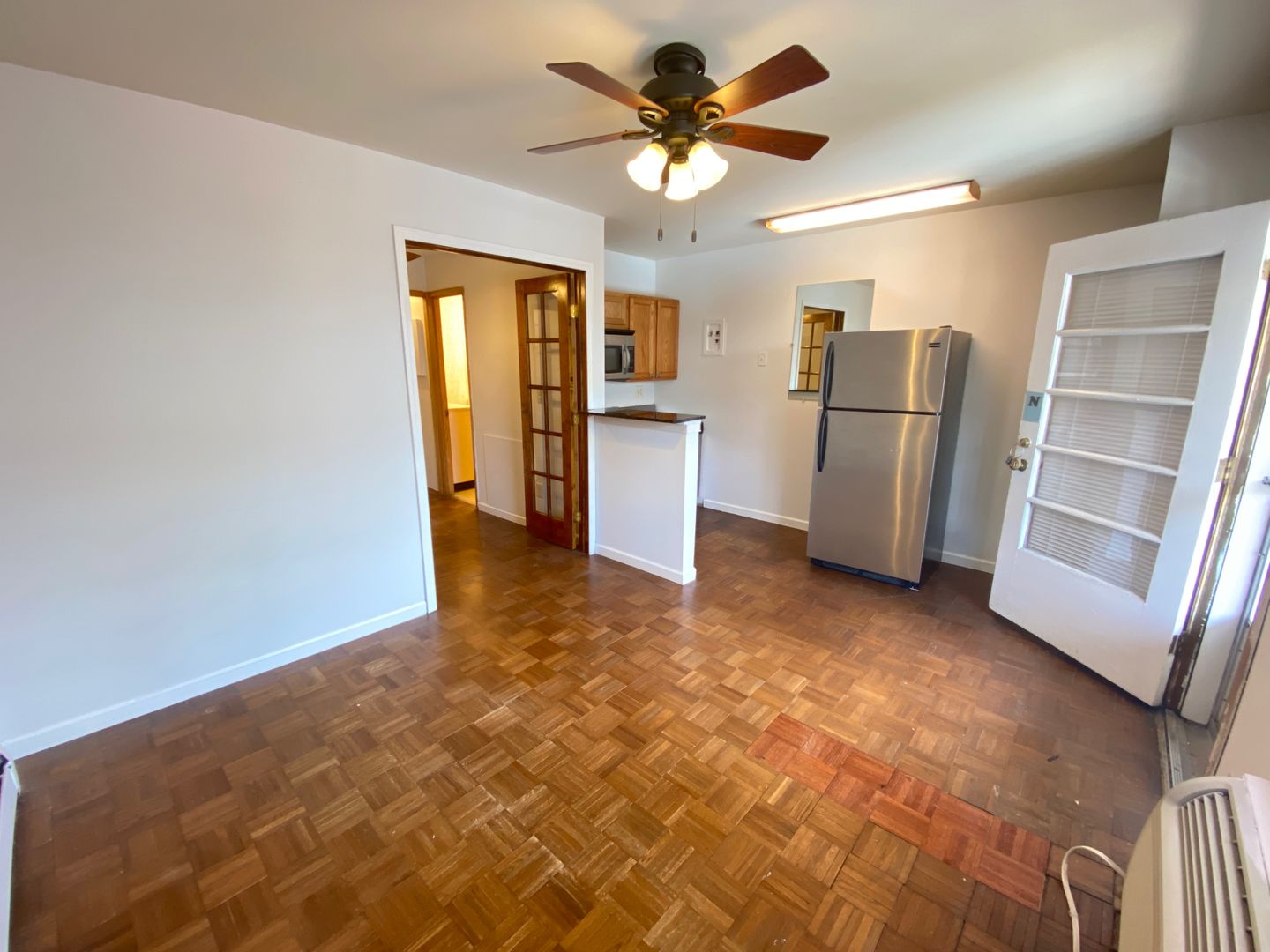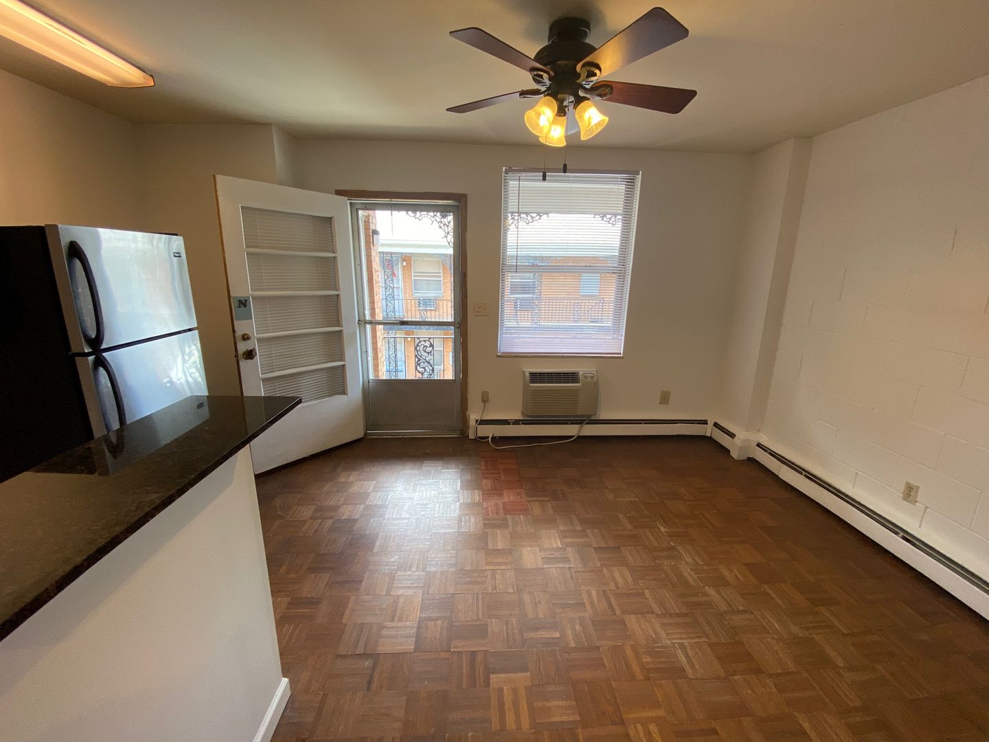 There is a washer/dryer on-site in the building, and optional limited off-street parking available for purchase. There is even a courtyard for the tenants’ use. For the low price, this flat is worth checking out. Call us today!