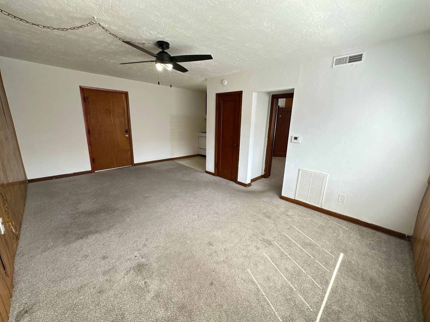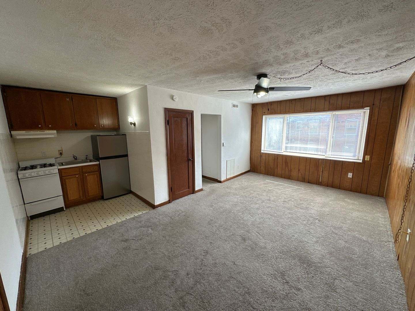 This large one-bedroom apartment is a 2nd floor middle unit. A few steps away from Campus just north of Lane Avenue. Surprisingly quiet due to concrete block construction, this unit features large living room and bedroom, A/C, and ceiling fan.