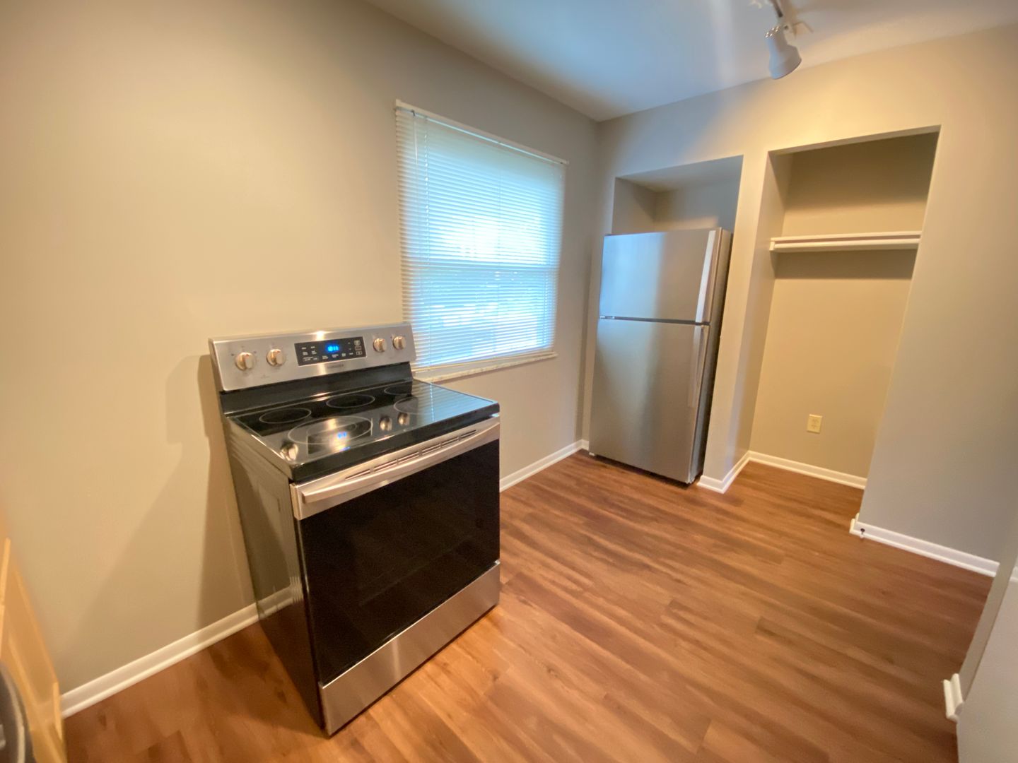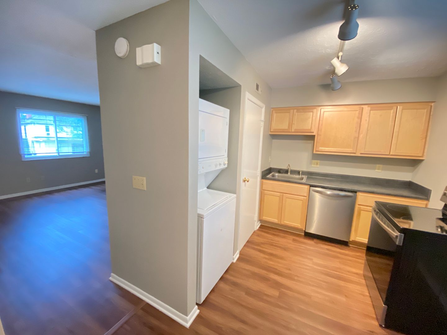 The living room includes an extra large closet and nice living space. This apartment includes a washer and dryer for your convenience.
