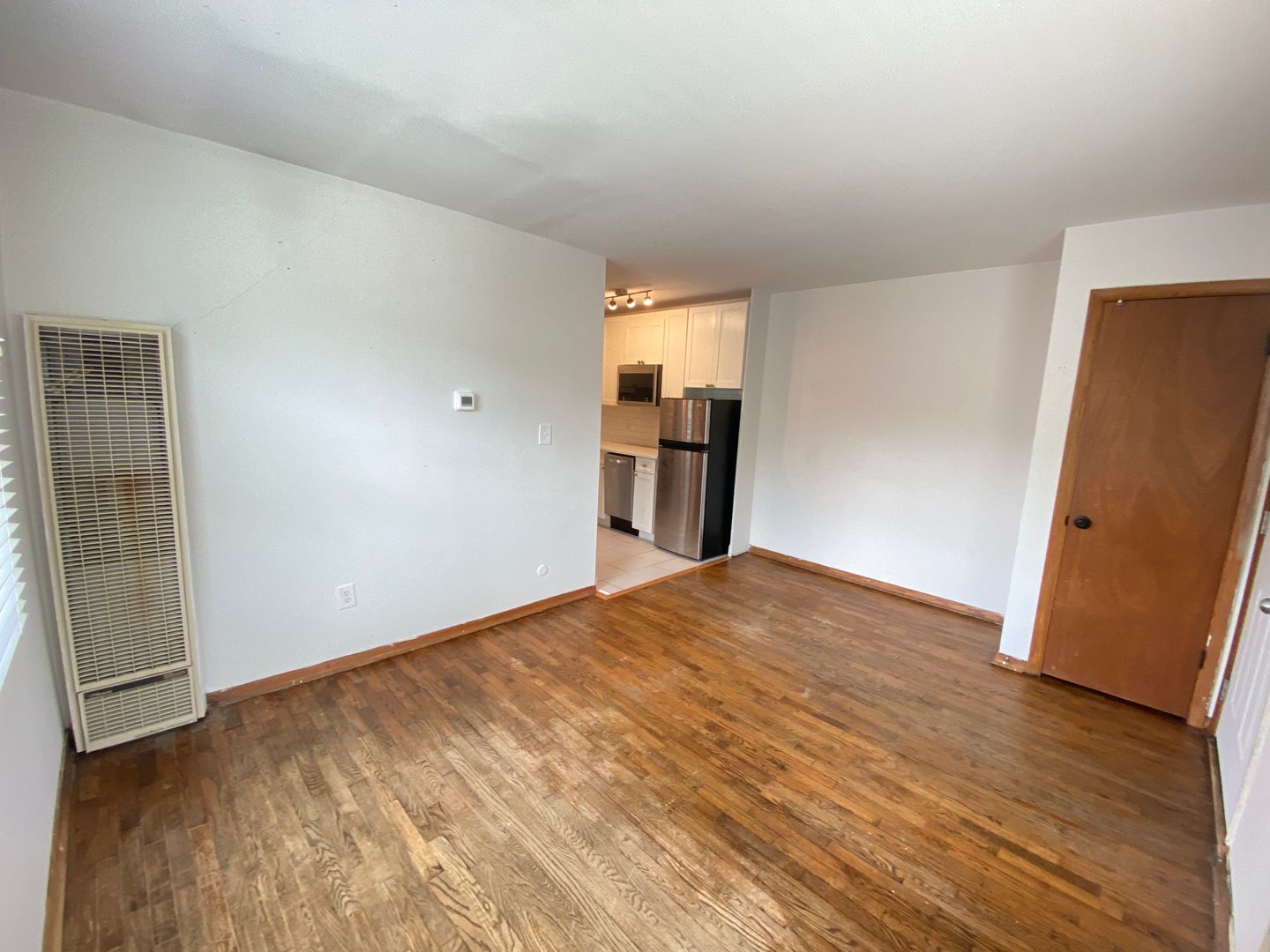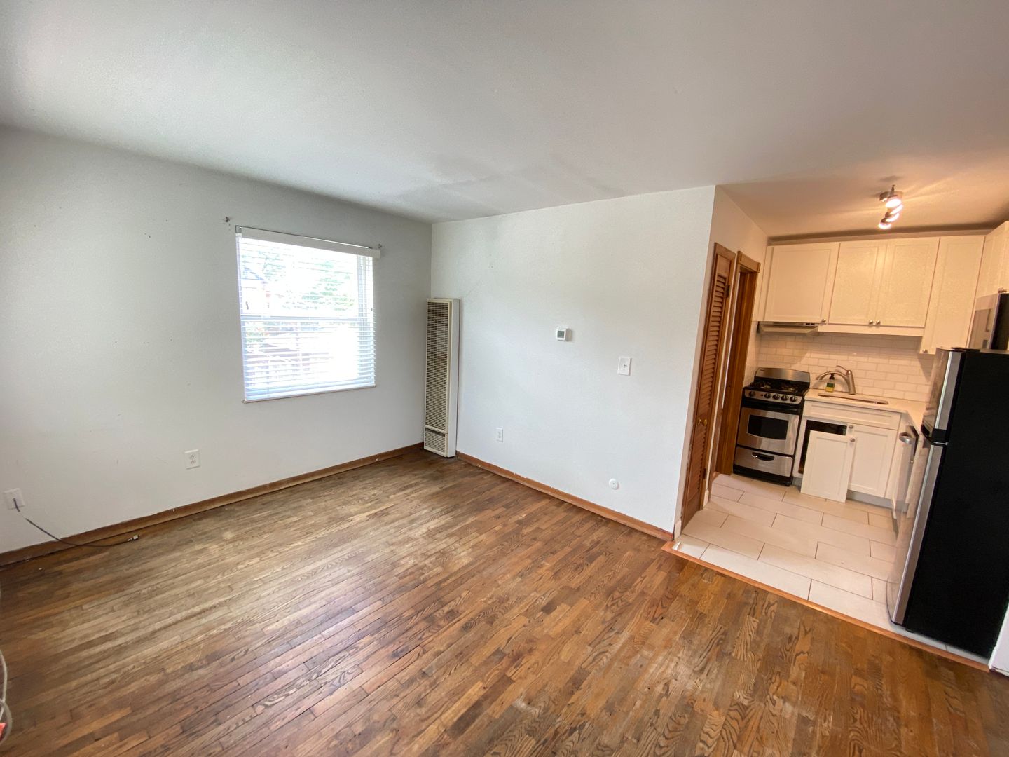This is a standard flat with a nice living room that opens up to the kitchen. Spacious closet in the bedroom and a bathroom with shower and tub. Some updates include hardwood flooring, and off-street parking is available for purchase. Hurry, this will definitely go fast at this price!