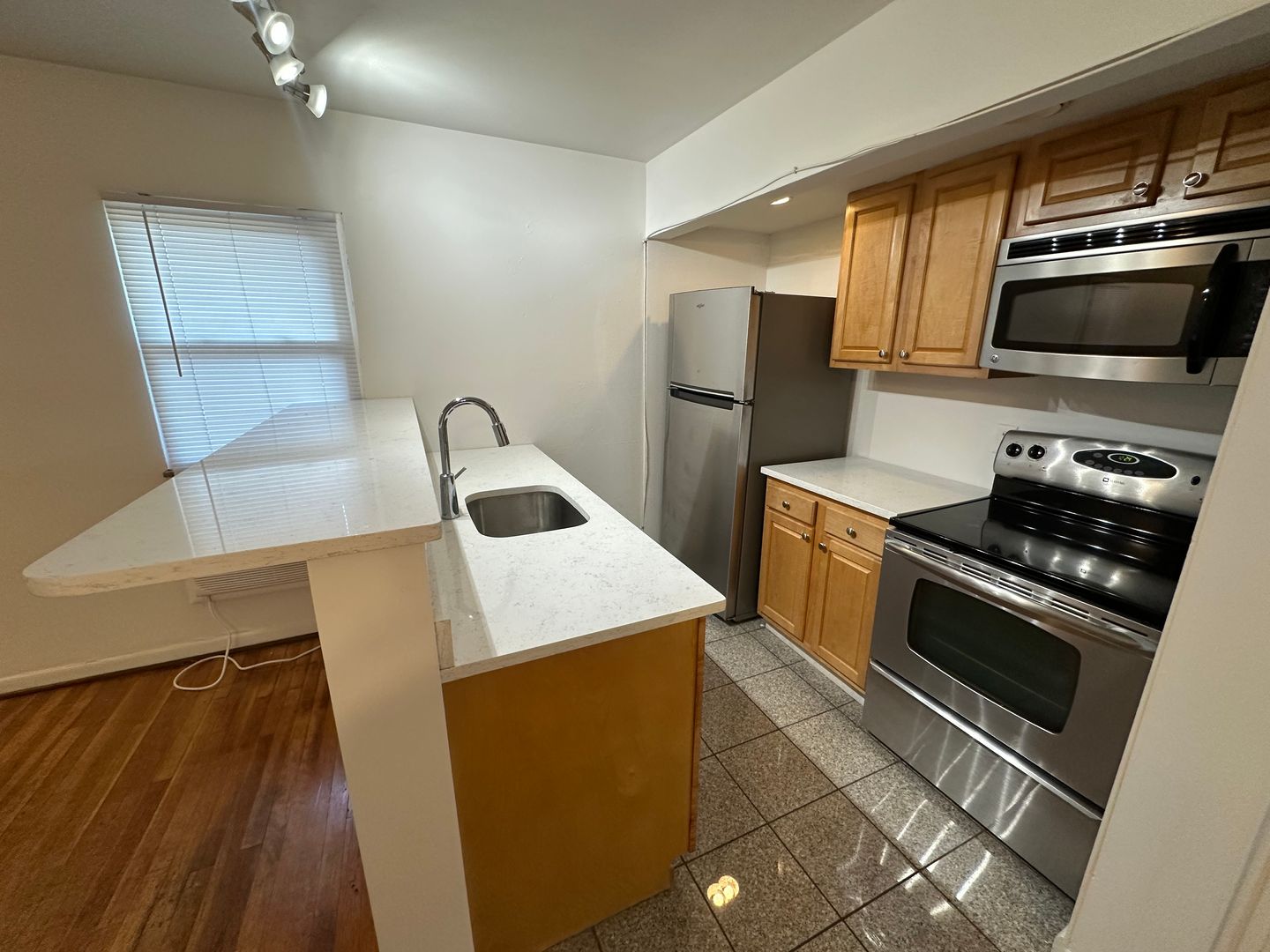 One of the most spacious apartments near campus! Completely renovated with refinished hardwood floors, stainless steel oven/stove, refrigerator, dishwasher and microwave!