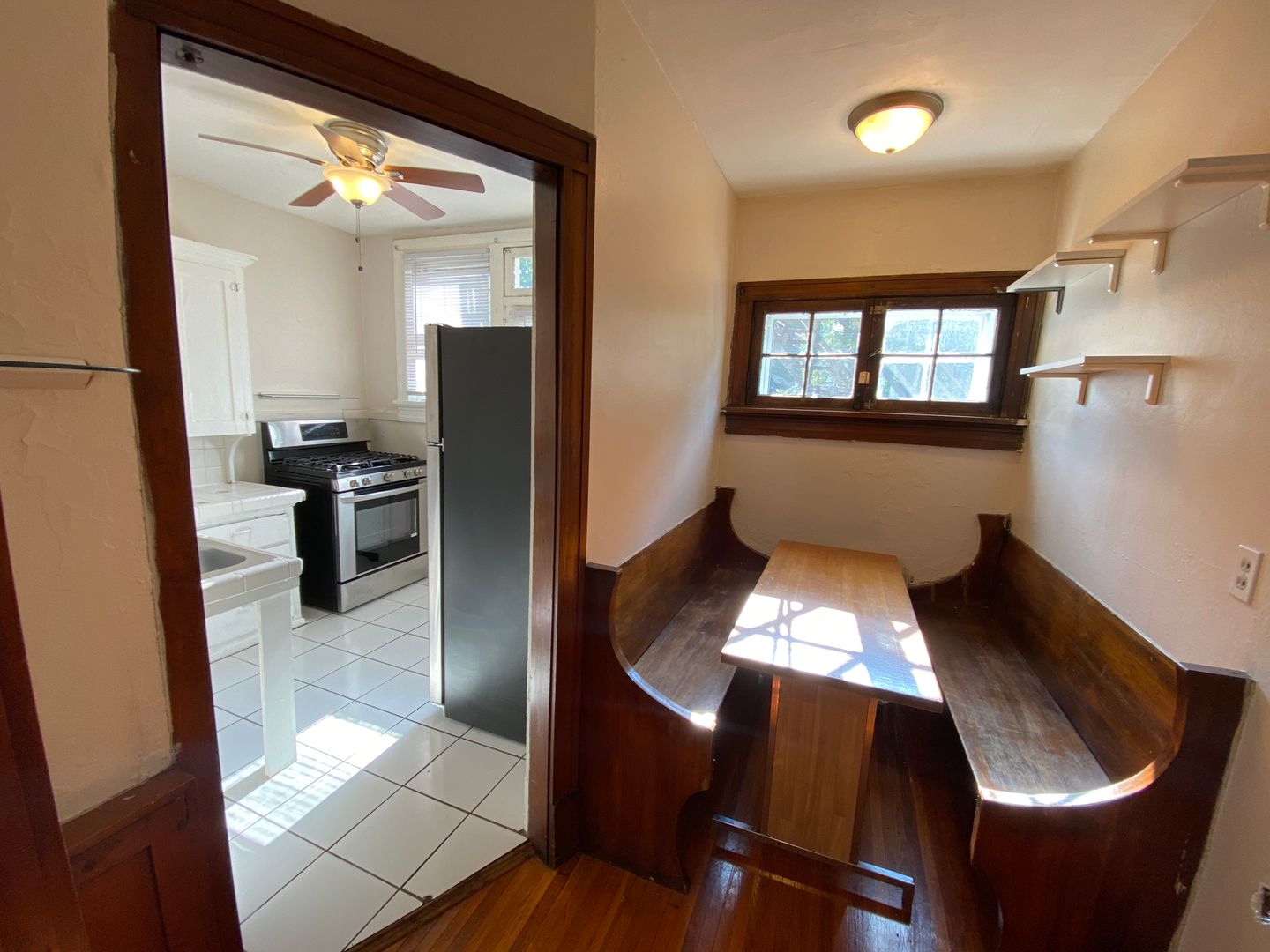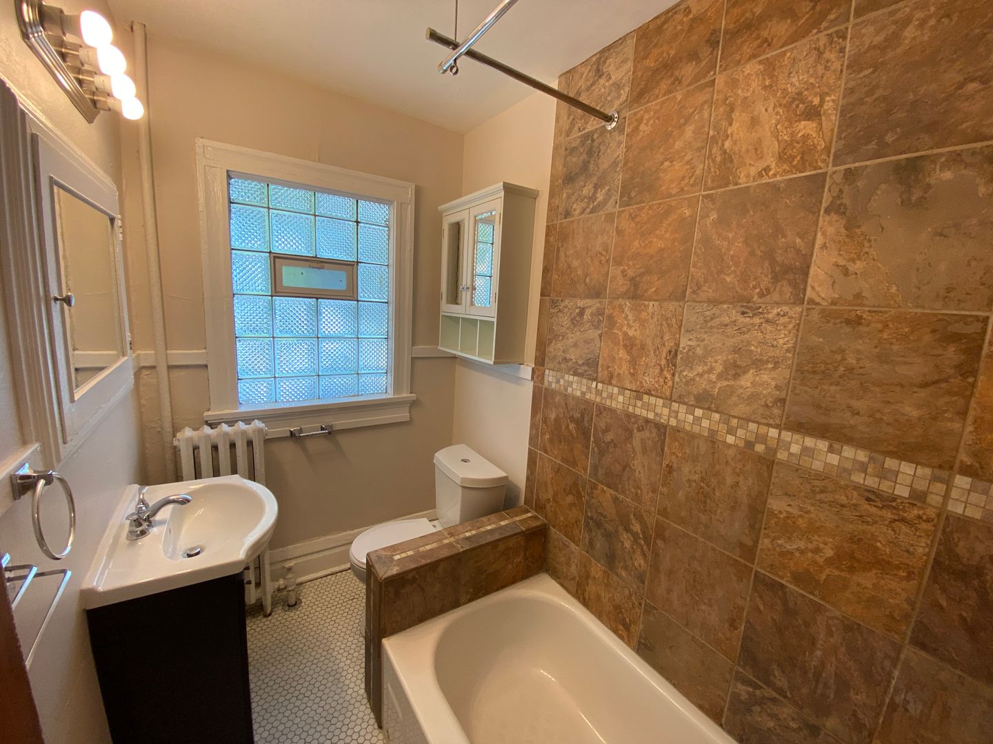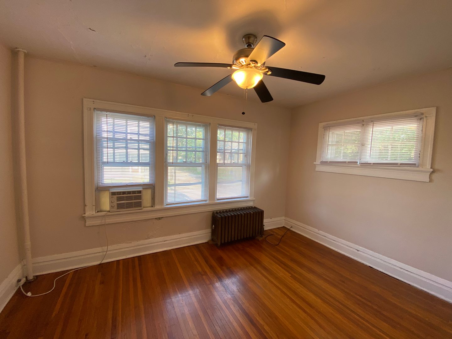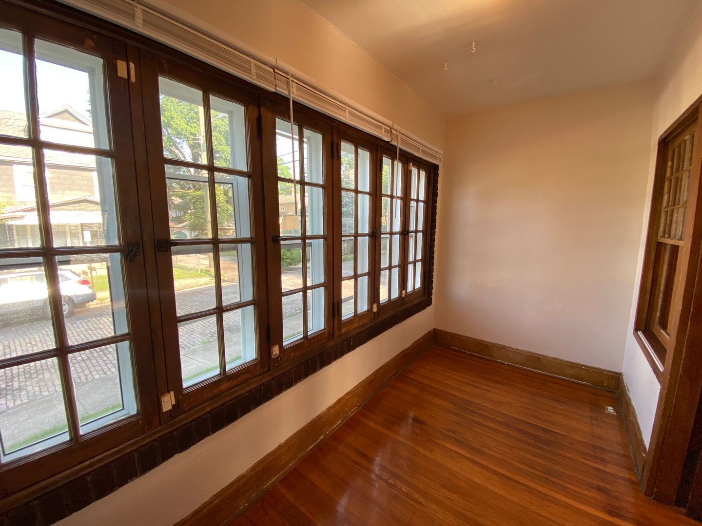 A beautiful living environment! Located on a quiet street, this apartment includes a four- season sunroom, a kitchen with built-in table in the dining room, lots of windows, ceramic tile, ceiling fans, mini blinds, great refinished hardwood floors, Large basement with washer/dryer is available for the tenants’ use. Great location just a few blocks northeast of campus. A great living space that's also perfect for couples.