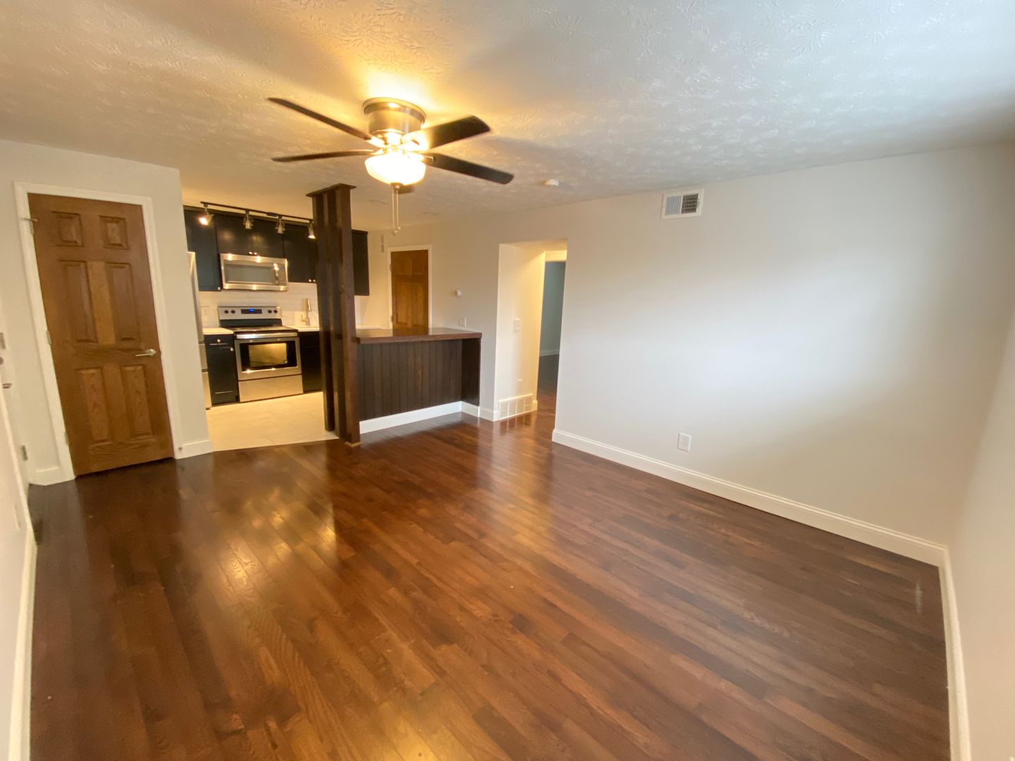 This apartment was renovated in 2019 and has everything you need! A large living room and washer & dryer. Kitchen includes a breakfast bar, dishwasher, quartz countertop µowave! Big bedrooms, hardwood floors throughout, ceiling fans, and plantation blinds.
