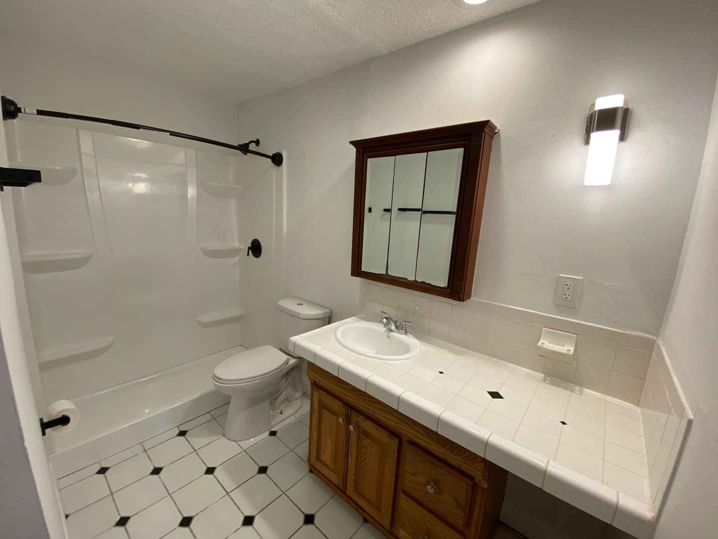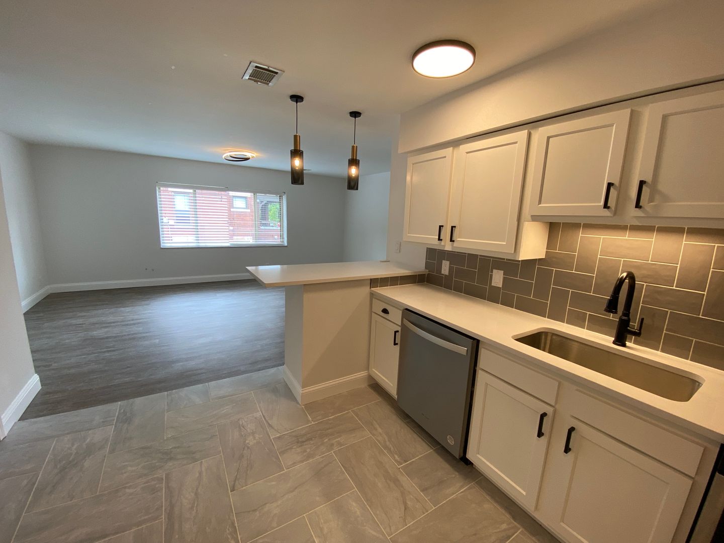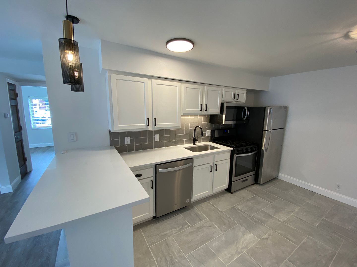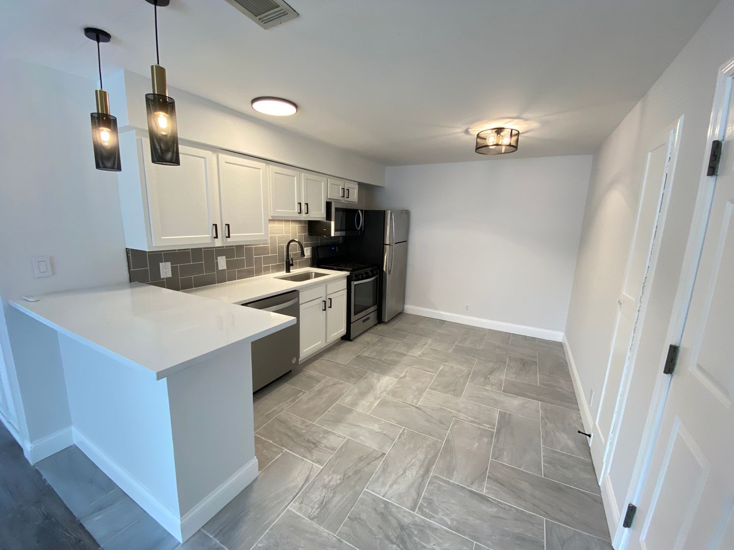 This apartment has a large, open floor plan with a dine-in kitchen.