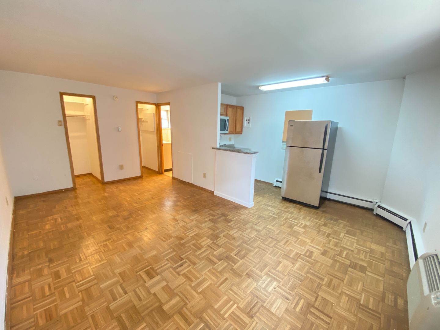 With hardwood floors, an efficiency-sized kitchen, and a full bathroom, this unit will have plenty of space for you to live alone and complete your studies. The kitchen is equipped with a stove and dishwasher. There is a washer/dryer on-site in the building, and optional limited off-street parking available for purchase. Call us today!