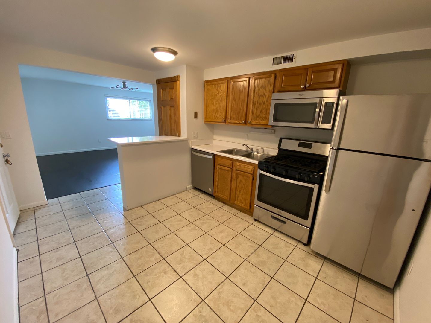 Great view, front first floor unit. Hardwood floors, stainless updated kitchen with ceramic tile, ceiling fans, free washer dryers in store room off central hallway for easy access. Central air, gas heat, DW, Solid wood doors and walk to campus.