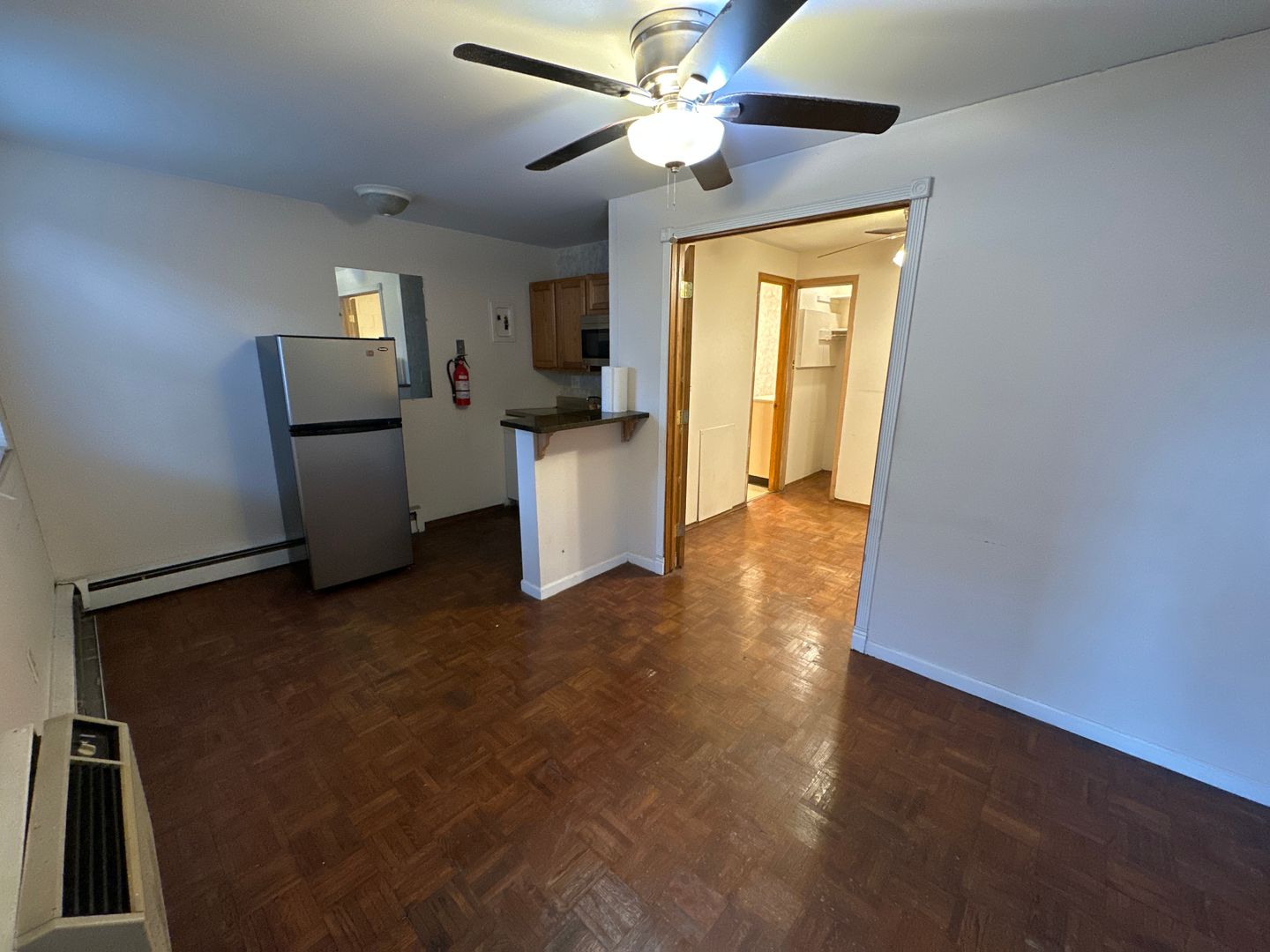 There is a washer/dryer on-site in the building, and optional limited off-street parking available for purchase. There is even a courtyard for the tenants’ use. For the low price, this flat is worth checking out. Call us today!