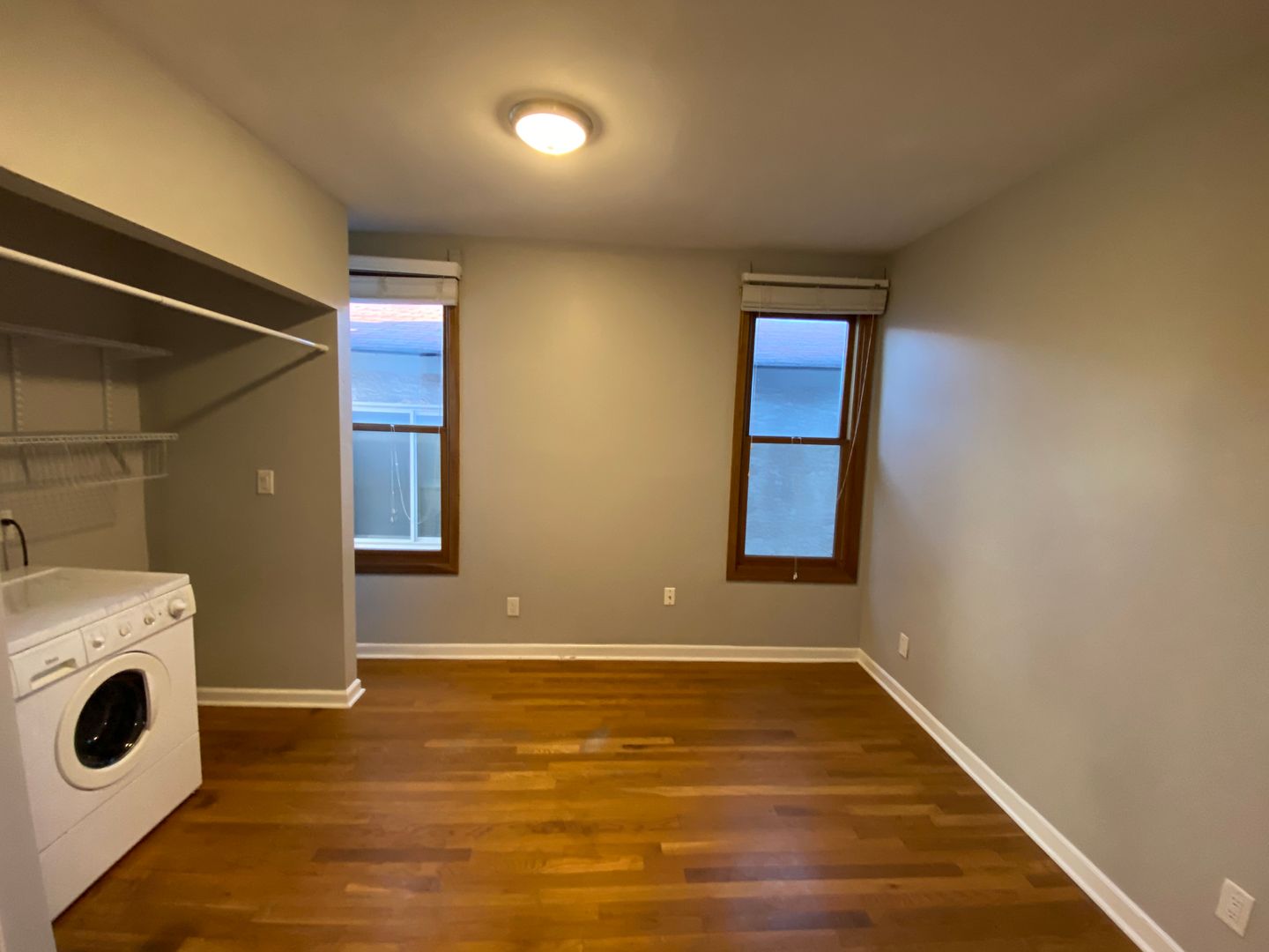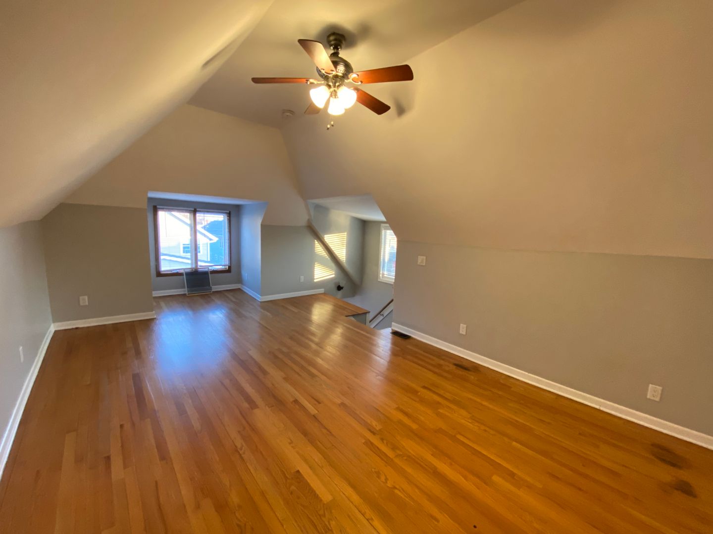 Spacious second and third floor 2 bedroom 2nd floor unit with hardwood floors. A large backyard with off-street parking is available. Come check out the house located on a cute street.