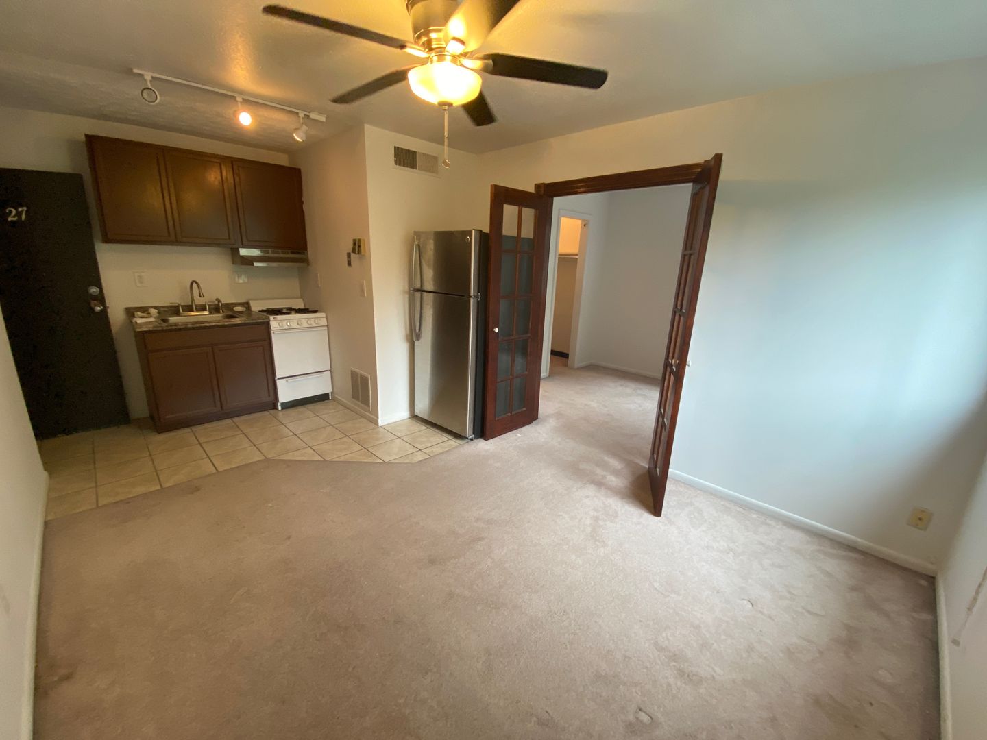 Located just four blocks north of Lane and west of High Street, this unit is ideal for one person. This 3rd-floor corner unit has a walk-in closet, ceiling fans, and French doors.