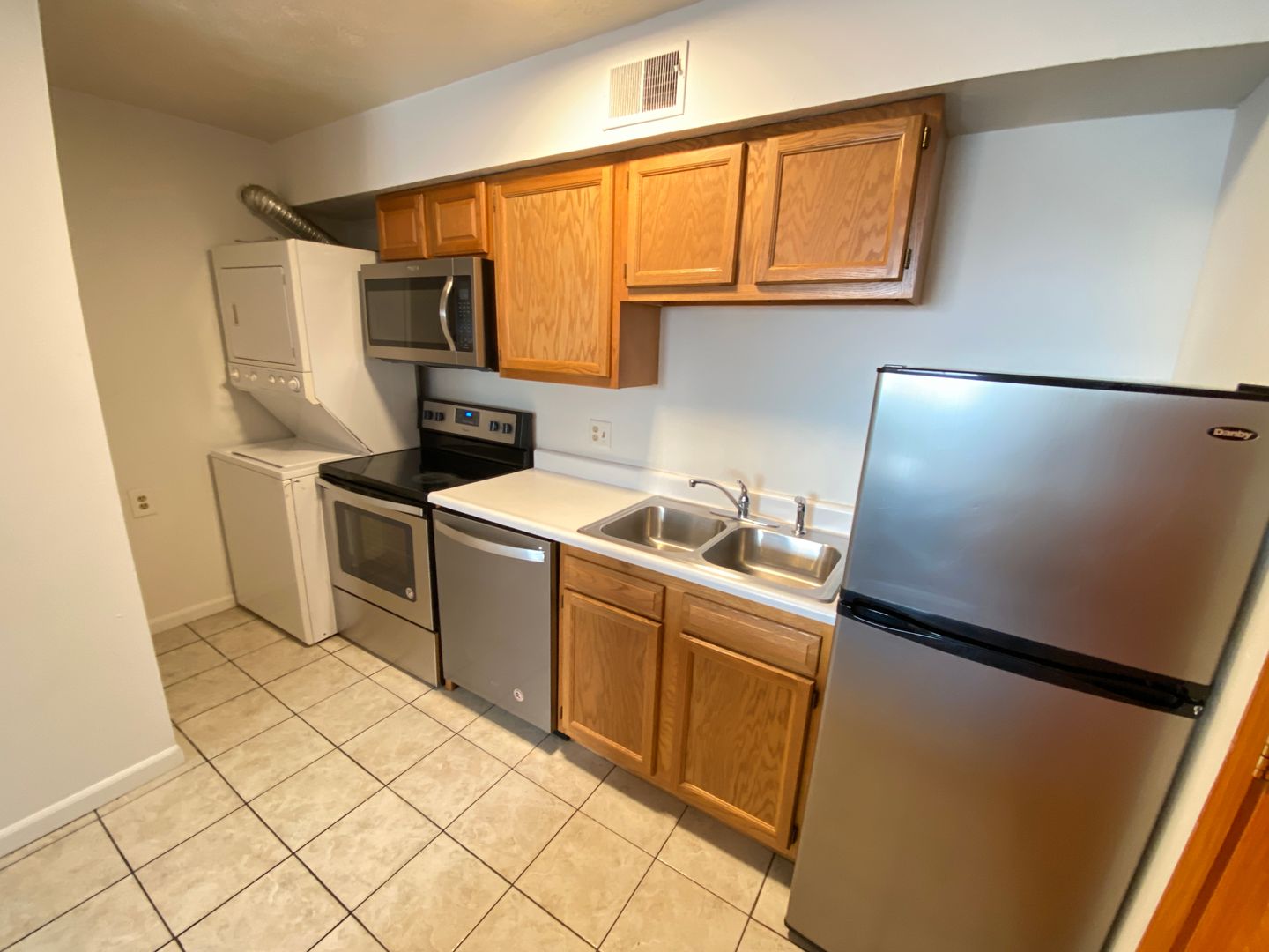 This apartment has everything you need! A large living room and the kitchen includes a breakfast bar, dishwasher, stacked washer/dryer µowave! The bathroom has full-size tub & shower, a ceramic-tiled floor, and plenty of storage. Bedrooms have wall to wall carpet, ceiling fans to keep you cool, and mini blinds.