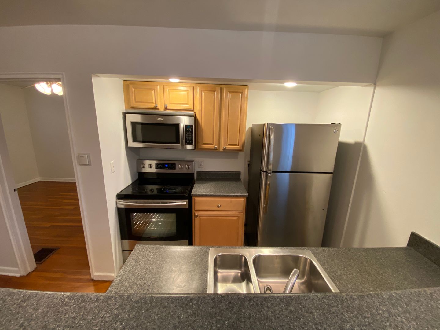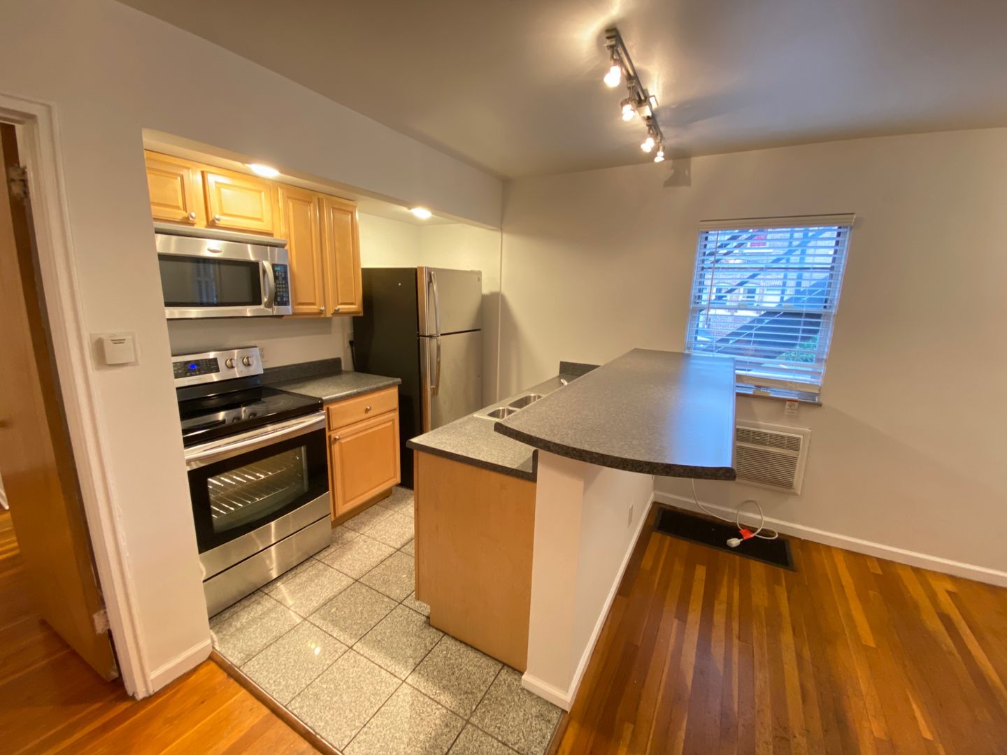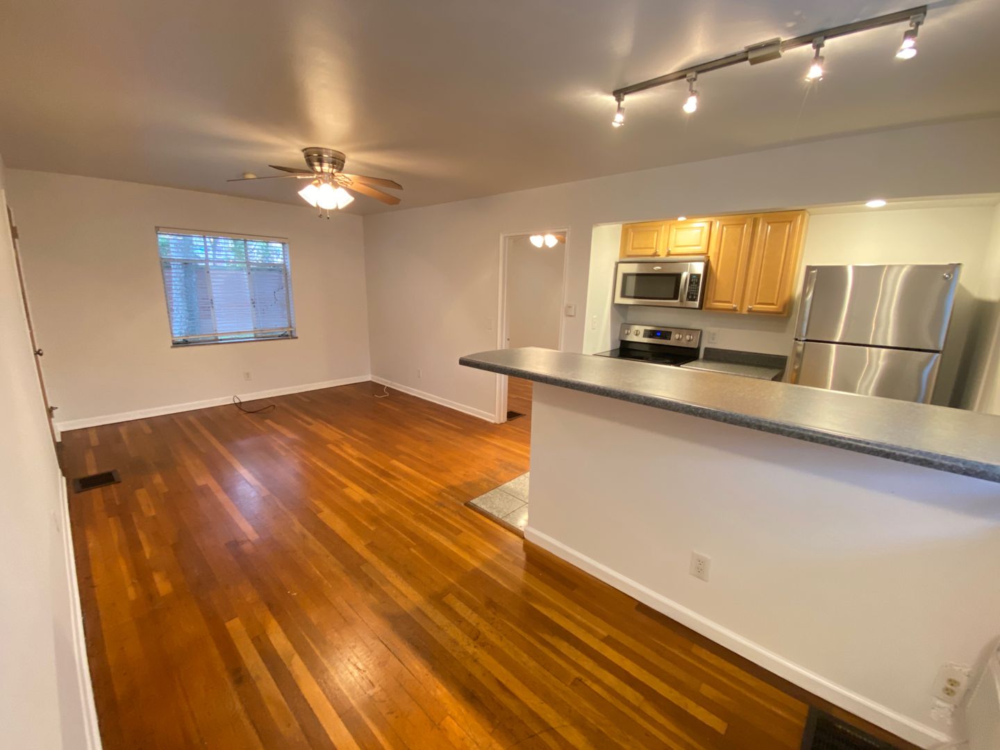 One of the most spacious apartments near campus! Refinished hardwood floors, stainless steel oven/stove, refrigerator, dishwasher and microwave!