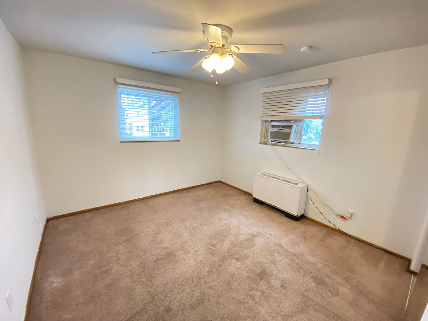 On site credit card operated laundry on the first floor of the building. Both bedrooms have window A/C units.