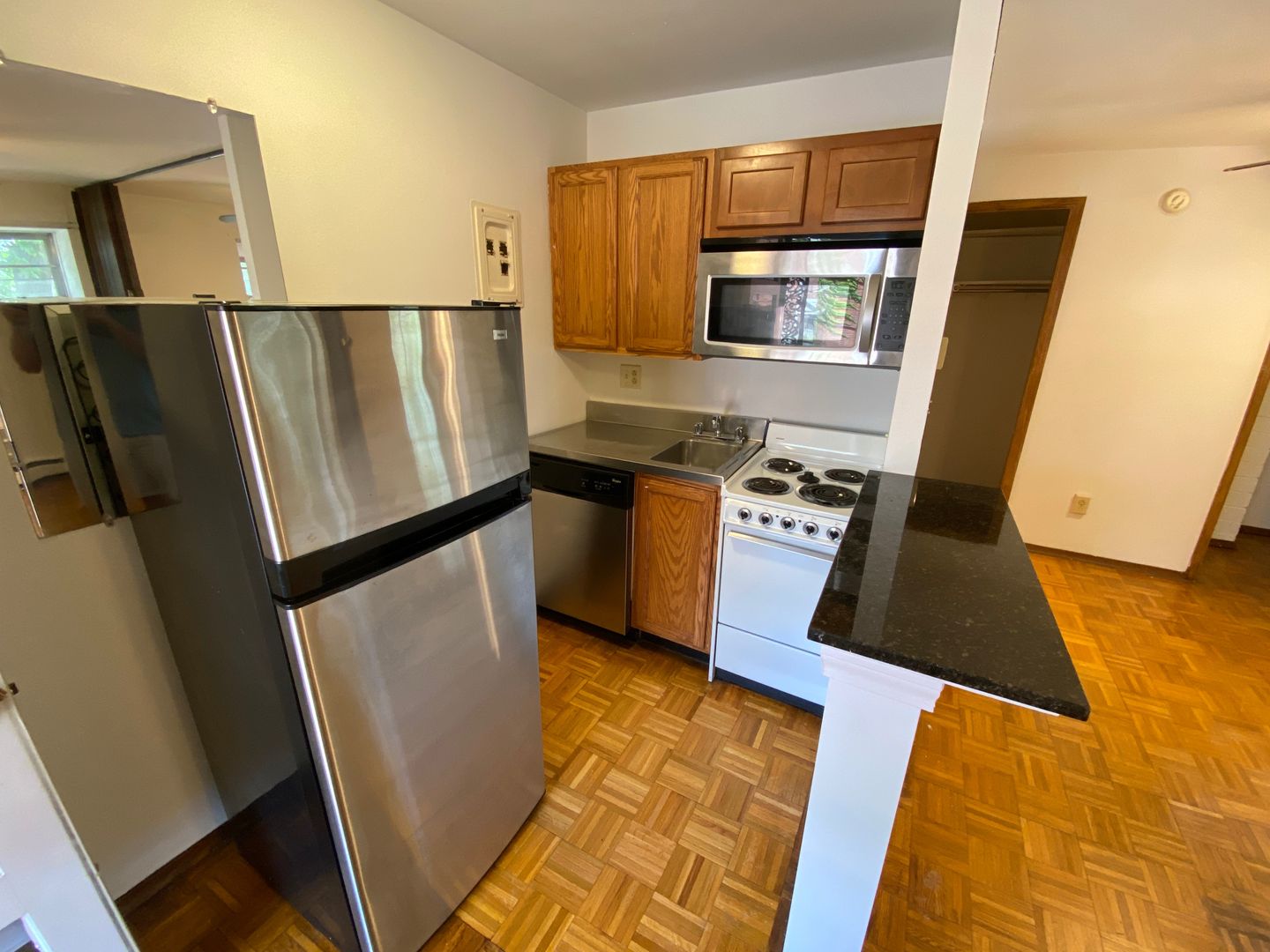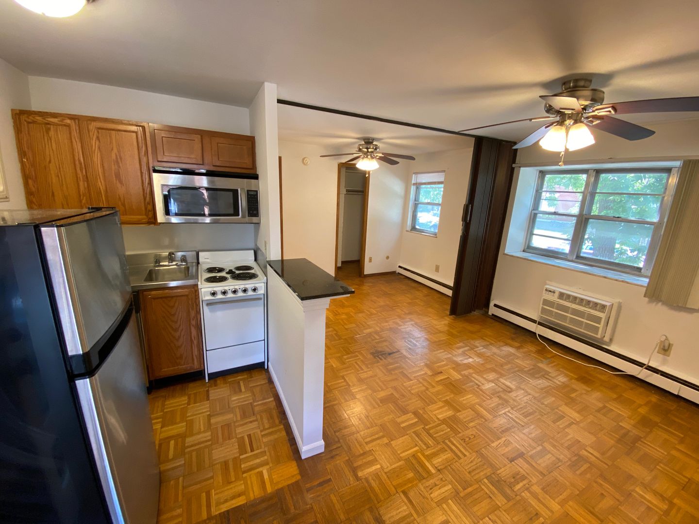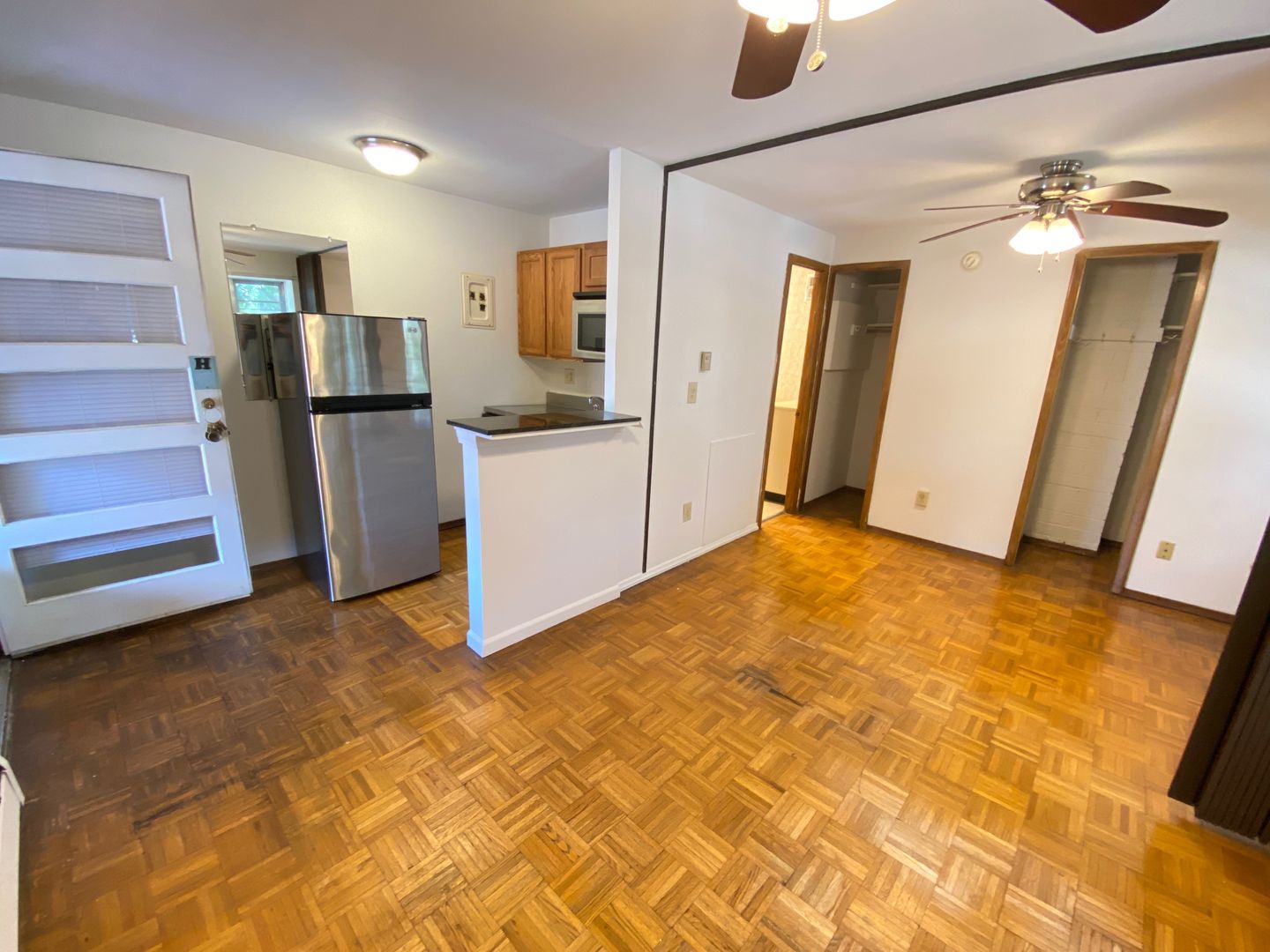 This unit includes a ceilings fan, an efficiency-sized kitchen, dishwasher along with a full bathroom. Additionally, there is a credit card operated laundry on-site and off-street parking available for purchase. Worth checking out now! Call us today!